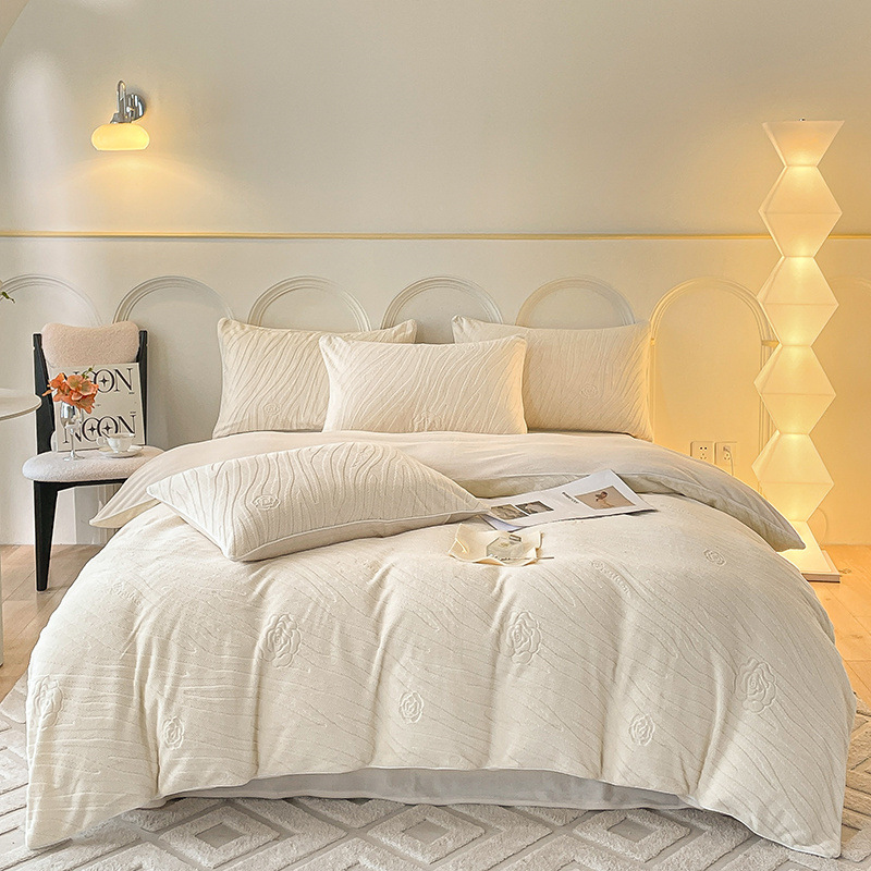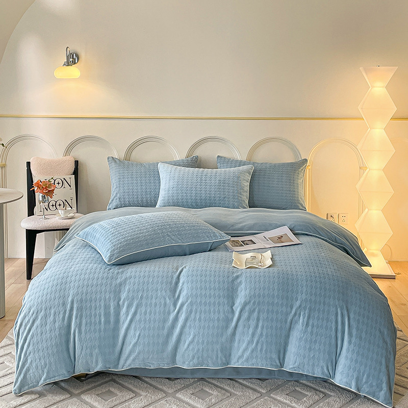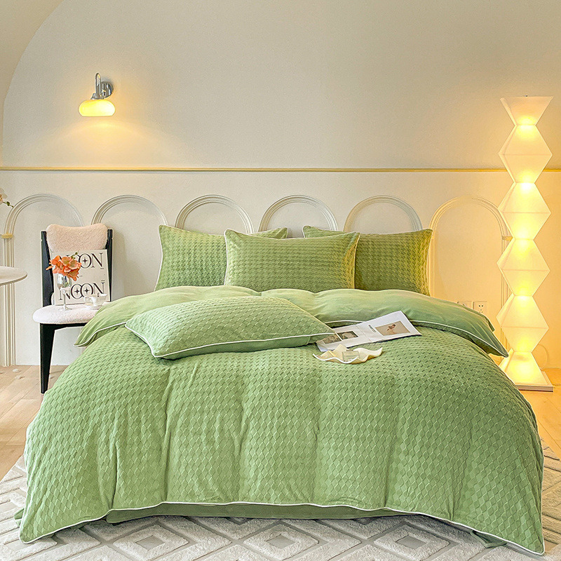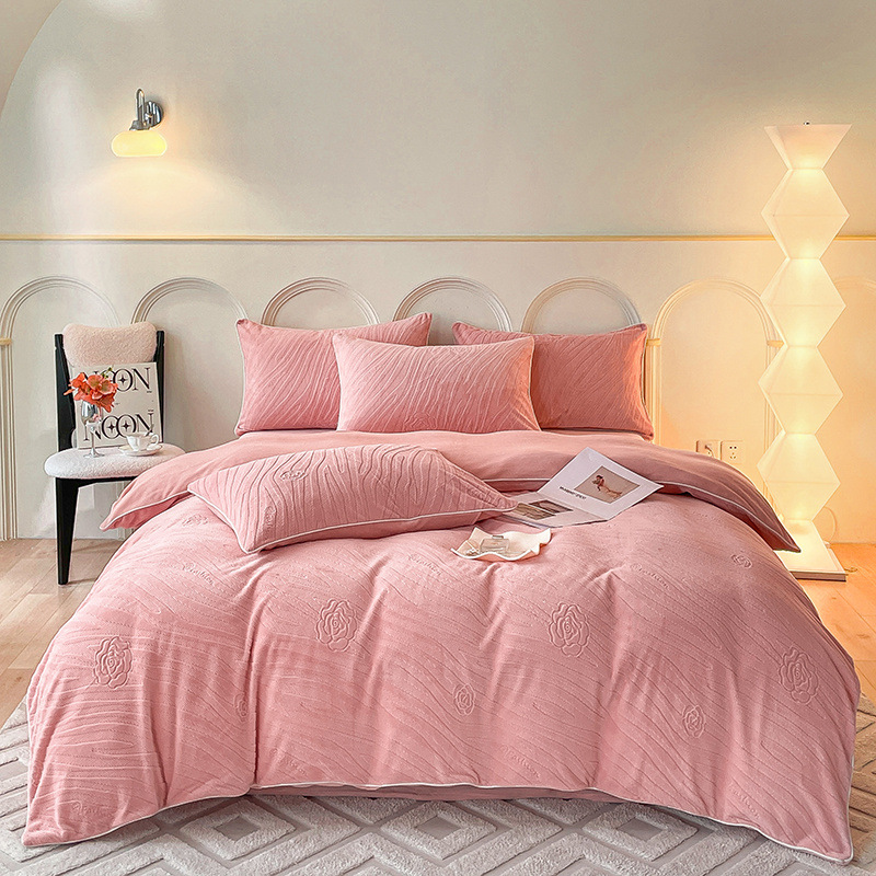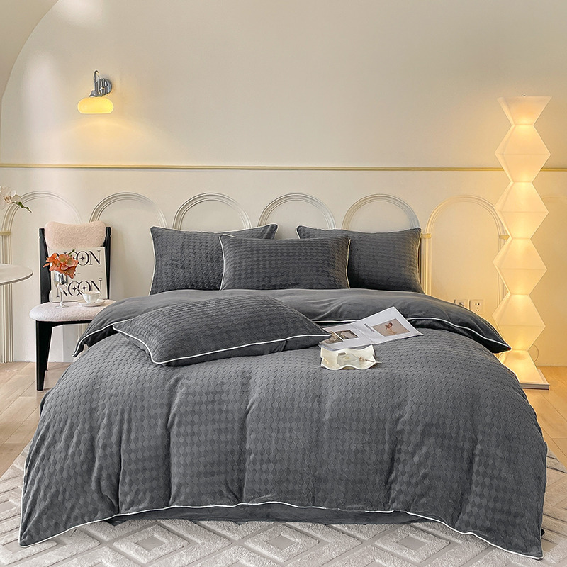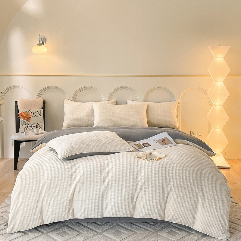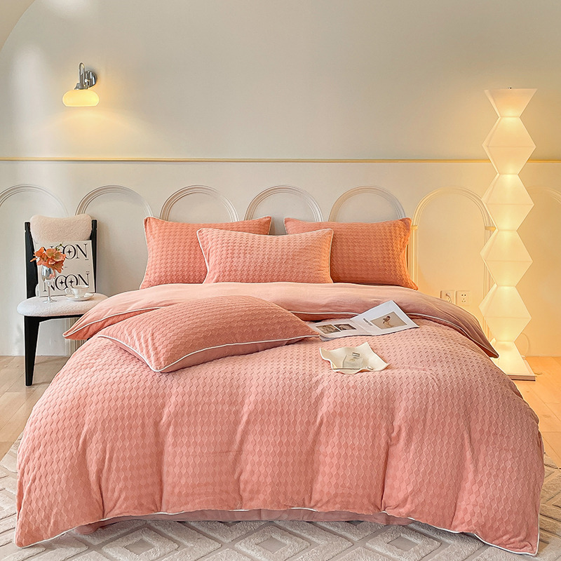 牛奶绒四件套床单被套加厚保暖秋冬床上三件套简约纯色南通家纺