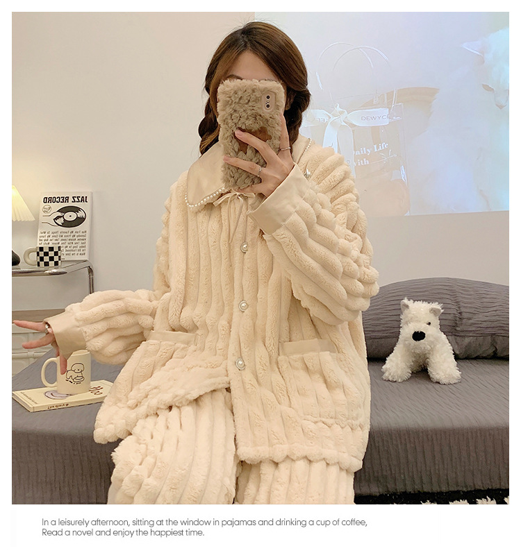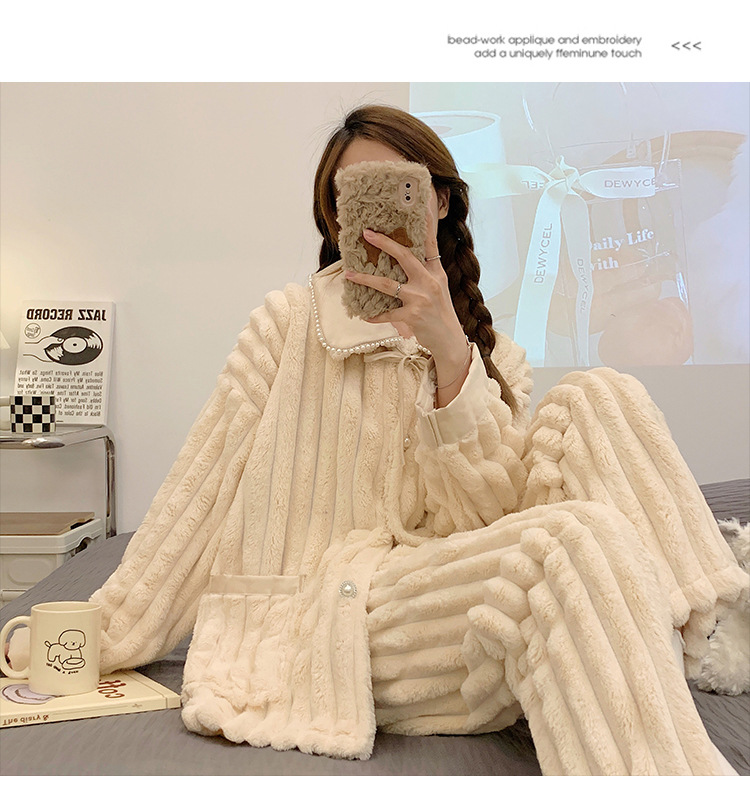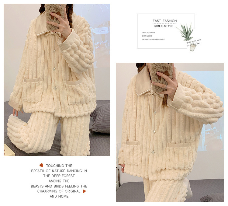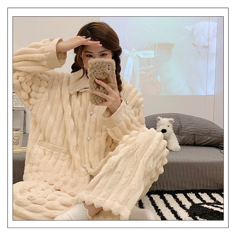 珊瑚绒睡衣女秋冬季新款加绒加厚网红风法兰绒保暖开衫家居服套装