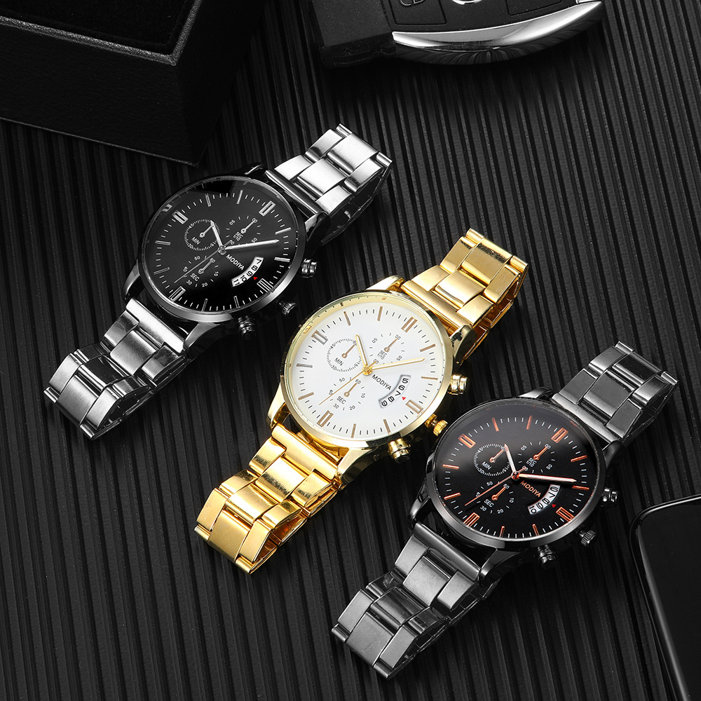 厂家直供手表男批发跨境watch日历钢带时装三眼合金石英男士手表