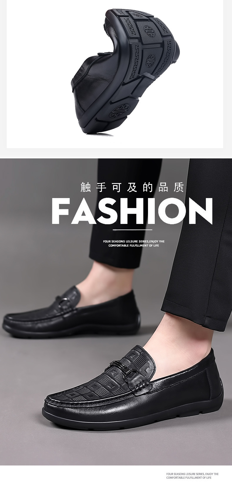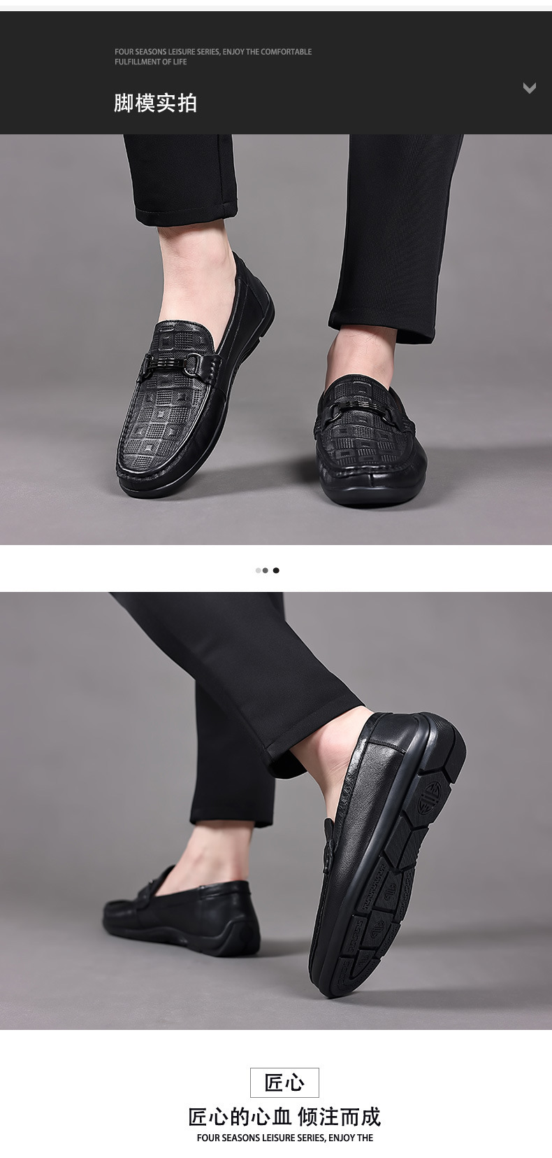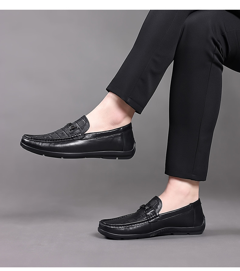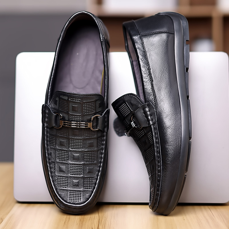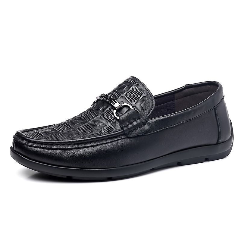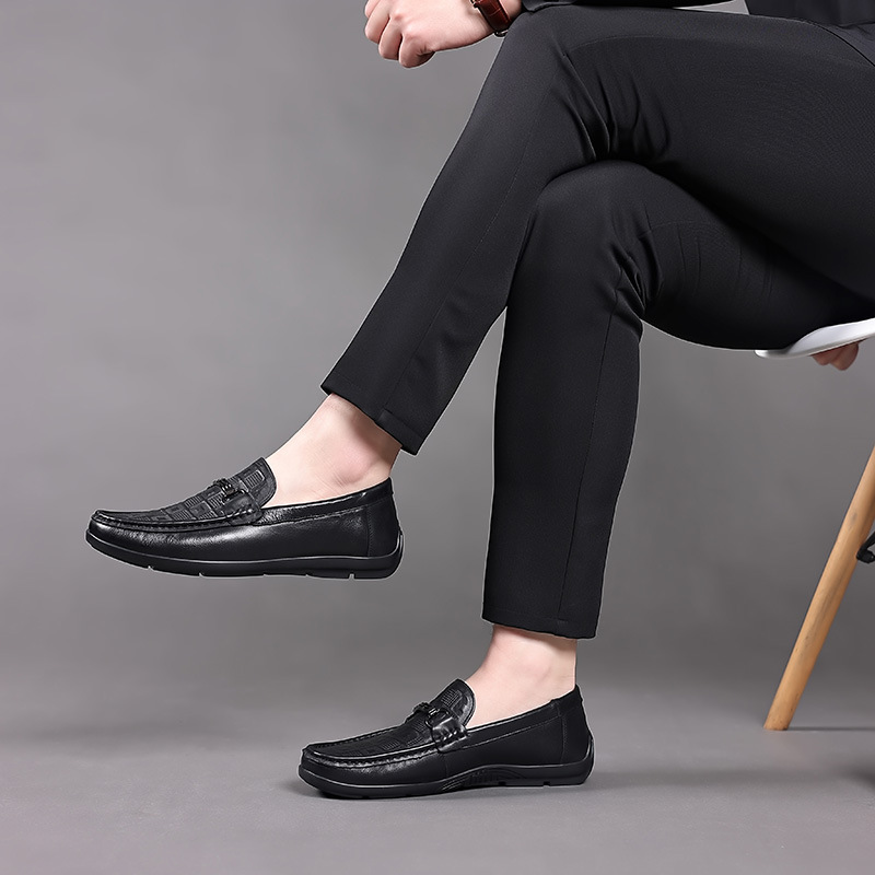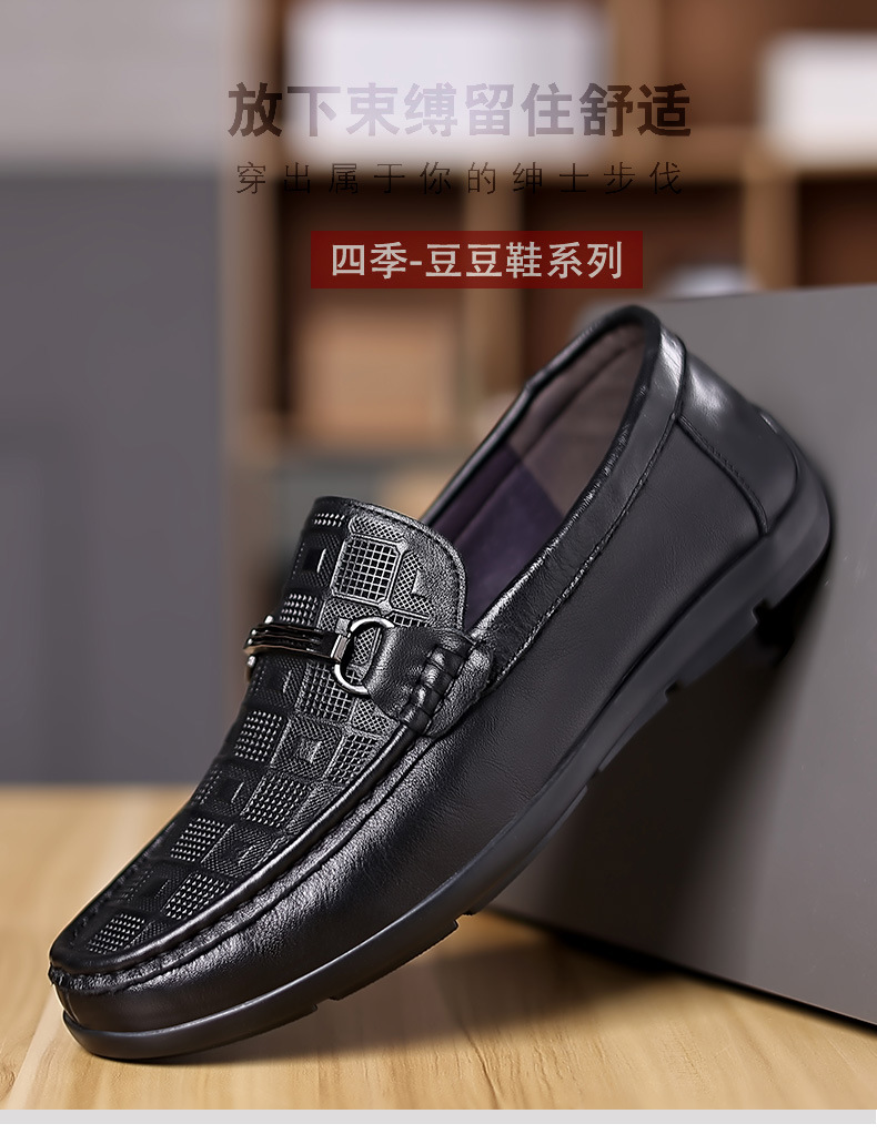 豆豆鞋男款真皮秋季新款休闲懒人一脚蹬软底压花开车休闲鞋男鞋子