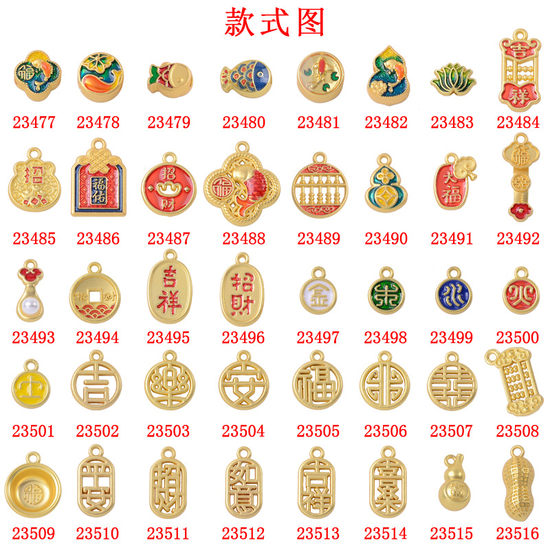 古法沙金吉祥如意小吊坠 手绳挂饰平安喜乐合金diy配饰