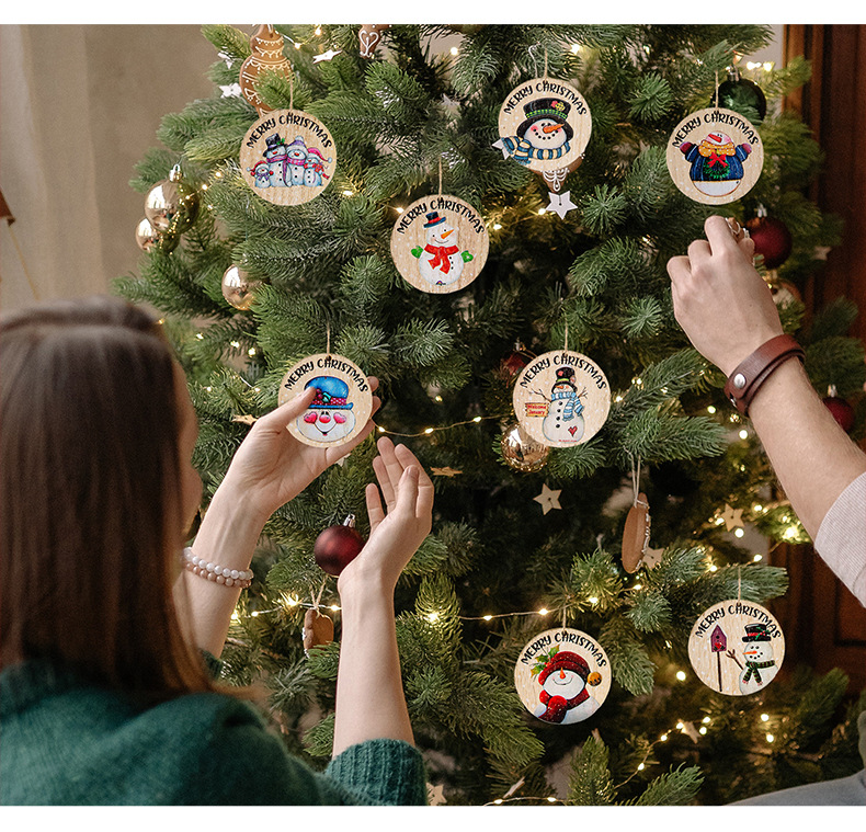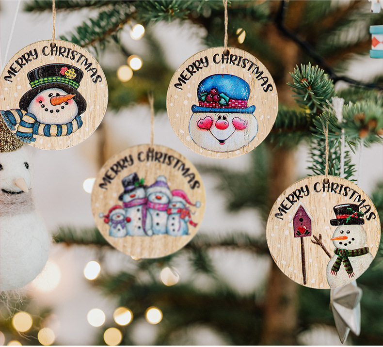 2024木质圣诞树装饰挂件圣诞主题装饰品吊牌丝印及UV彩印工艺品