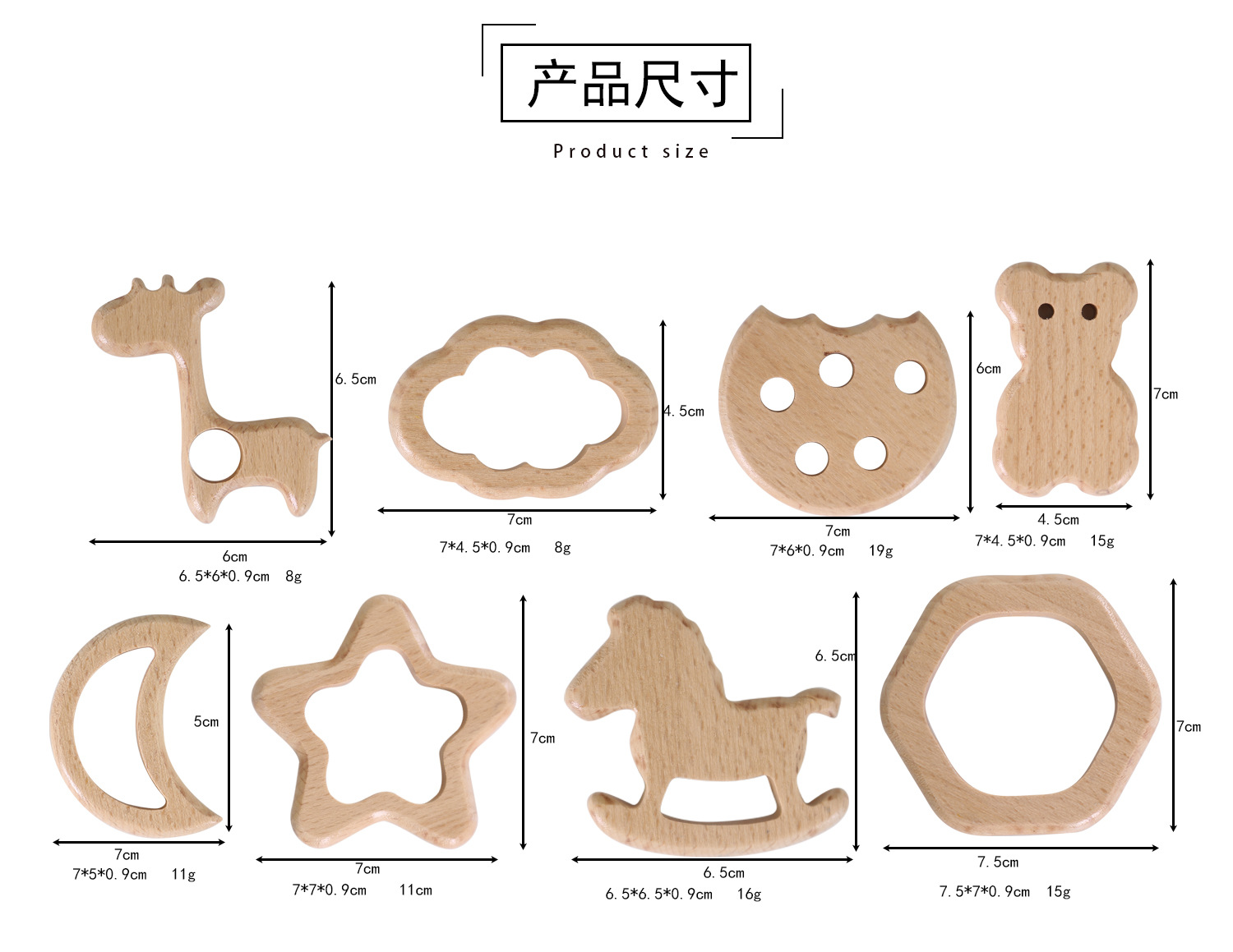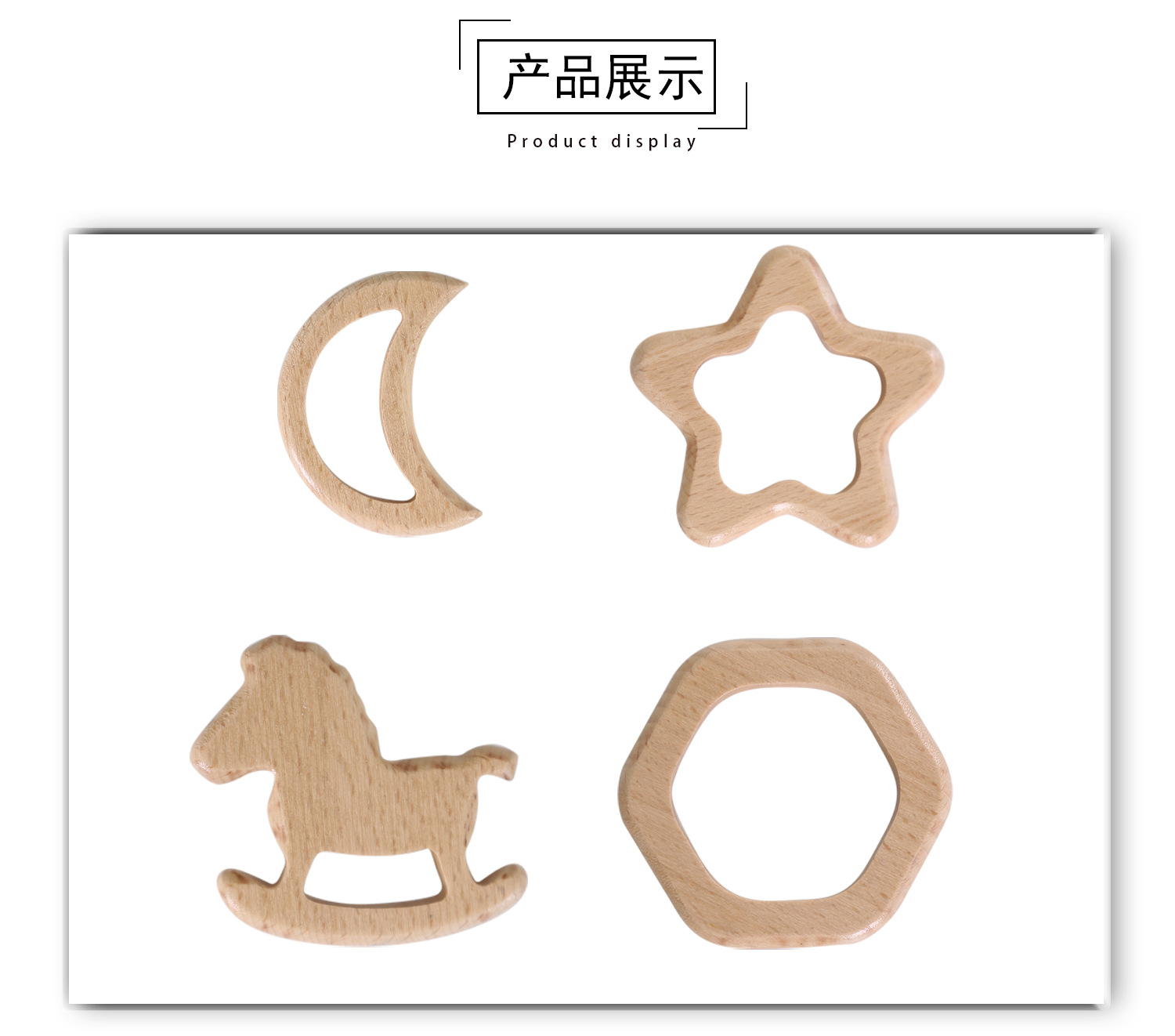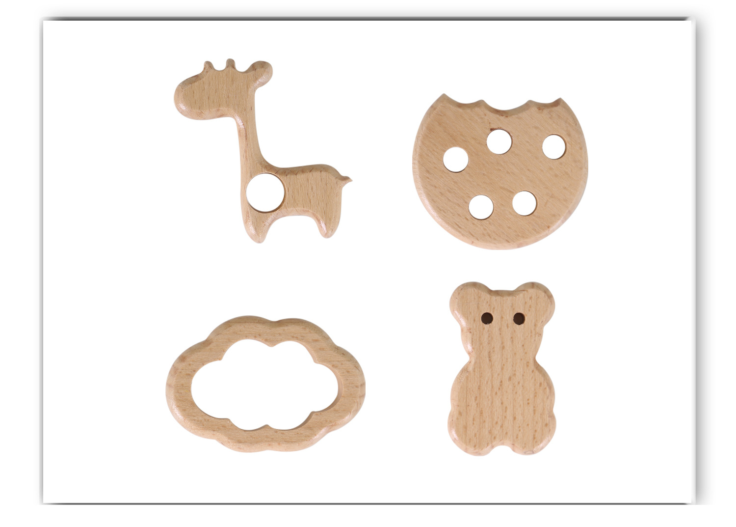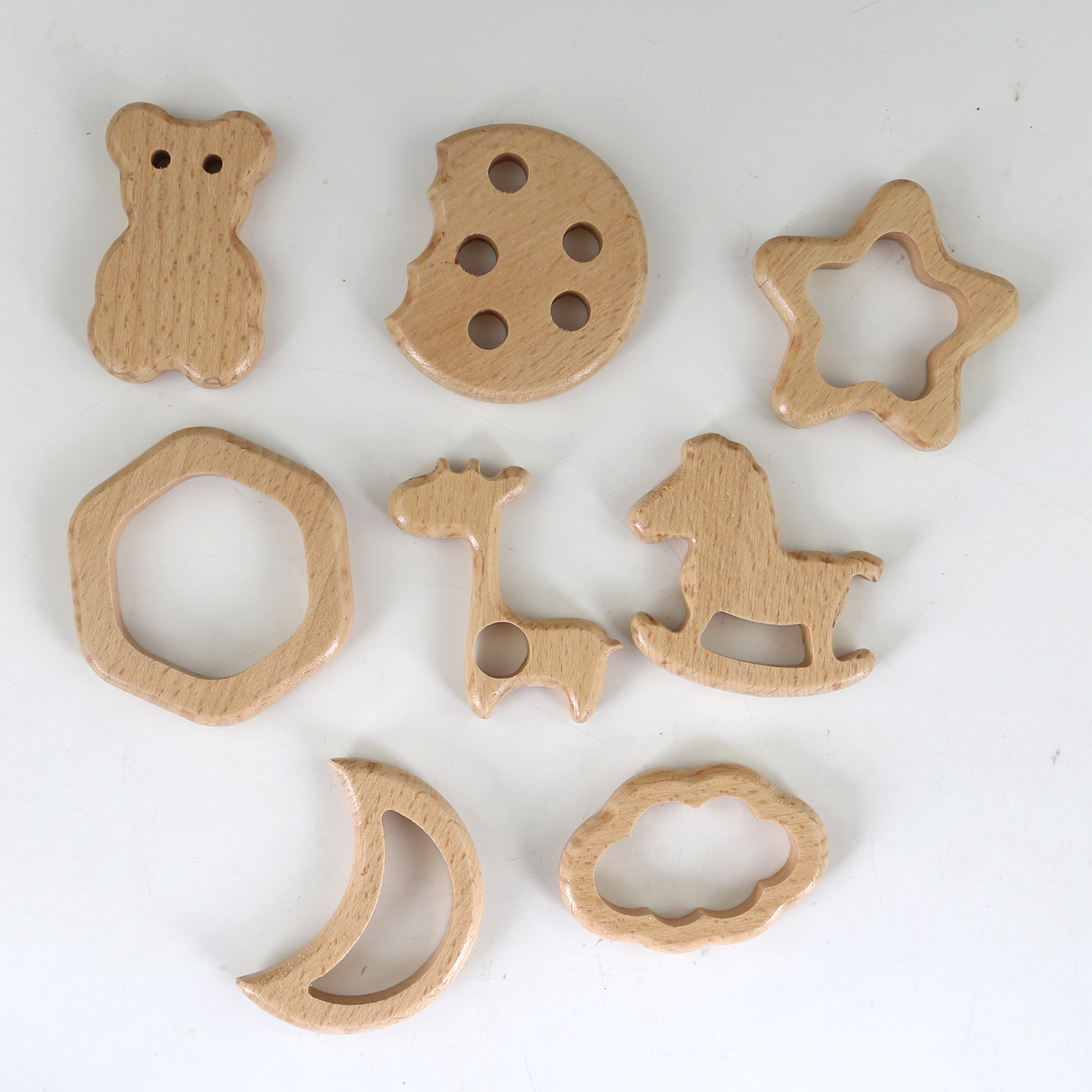 厂家直供榉木卡通动物宝宝木圈牙胶山毛榉磨牙棒婴儿磨牙玩具配件