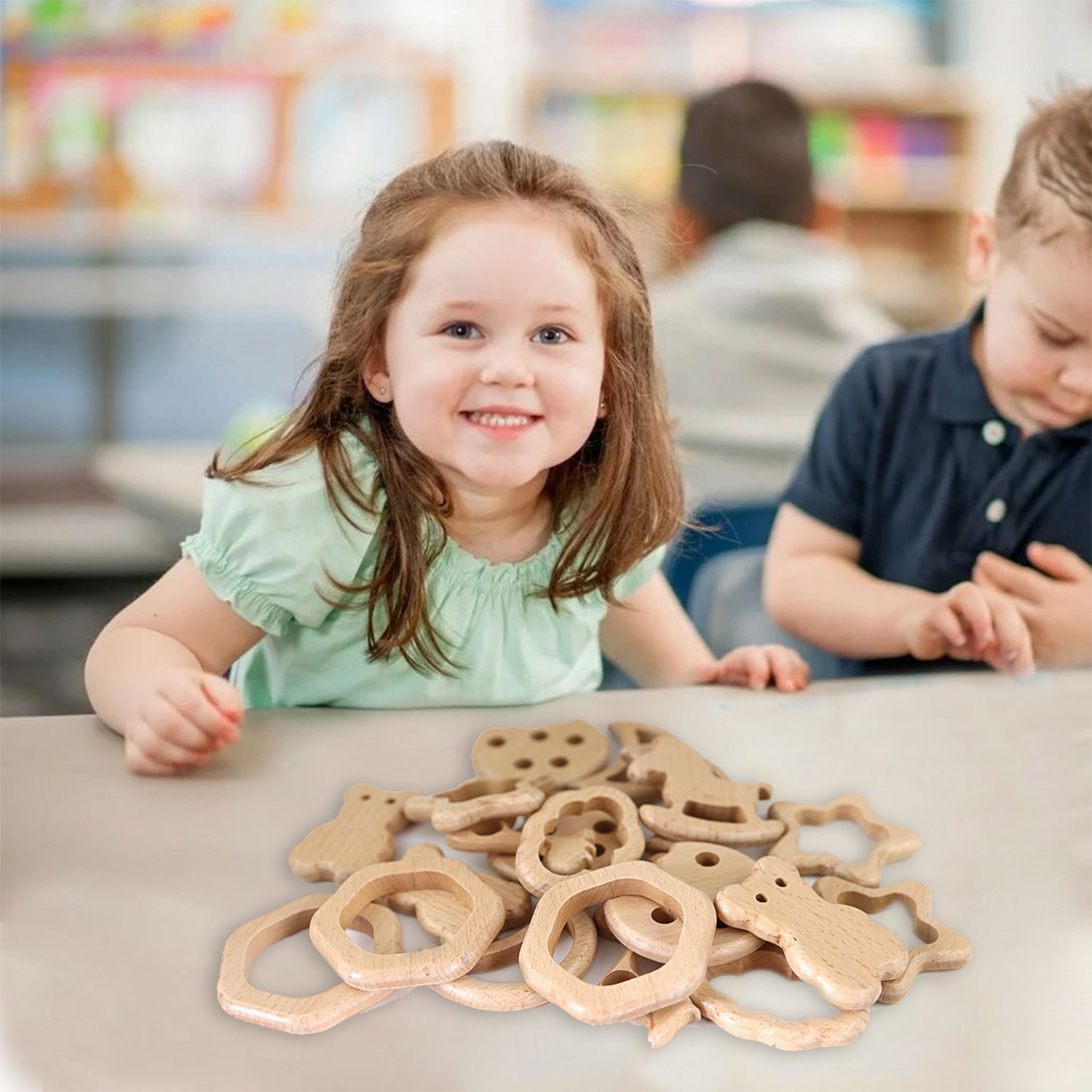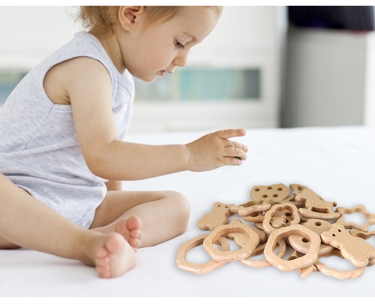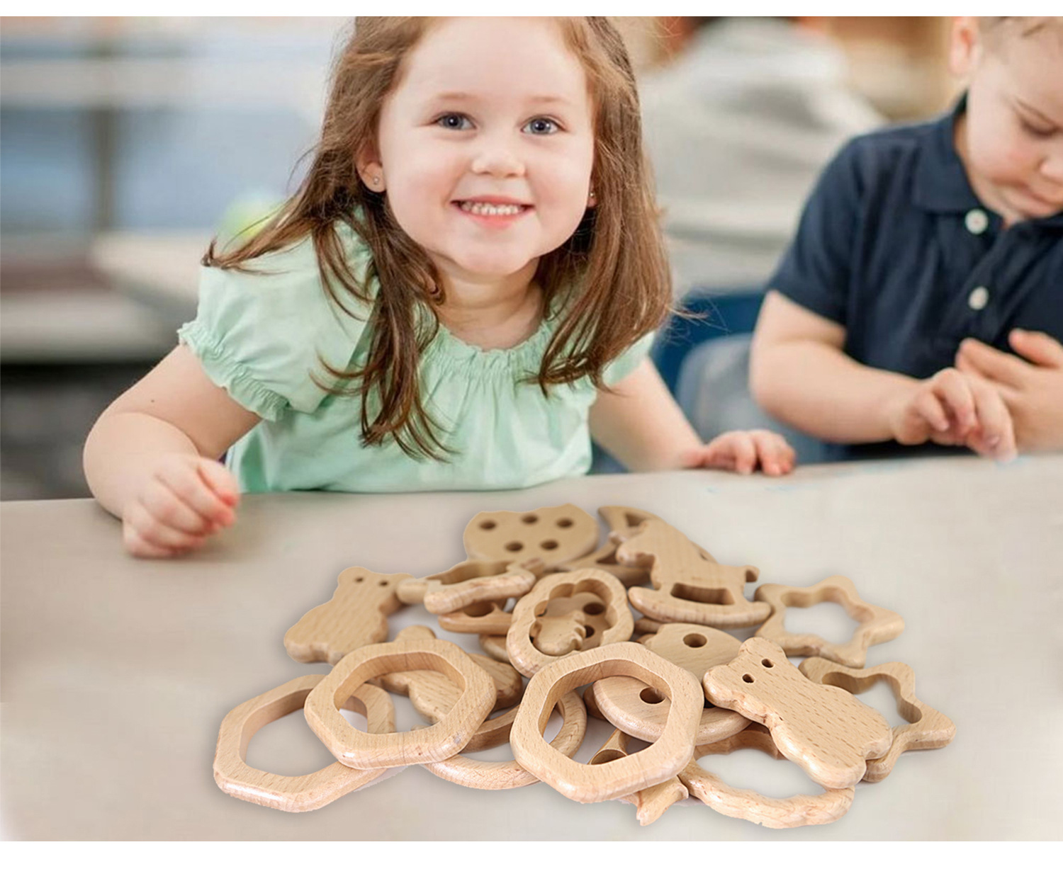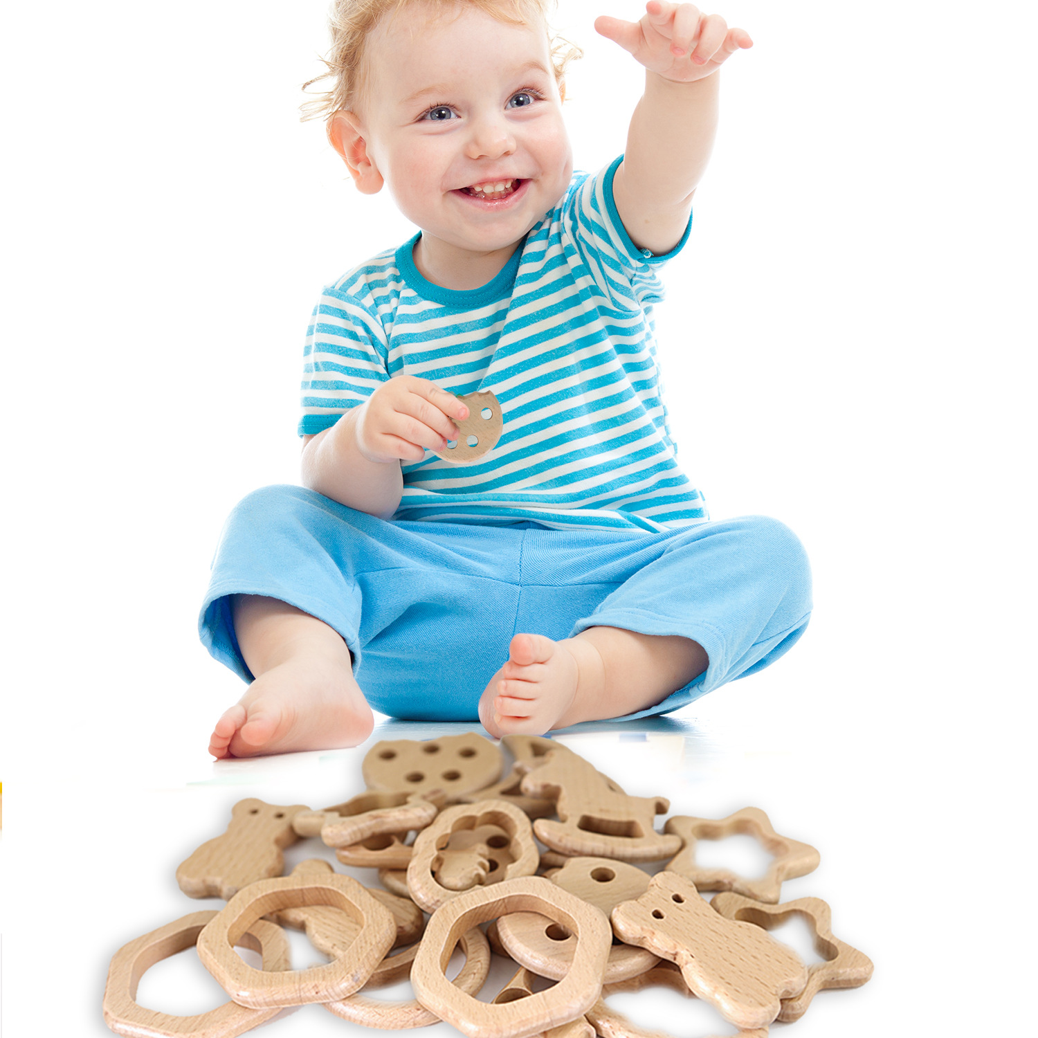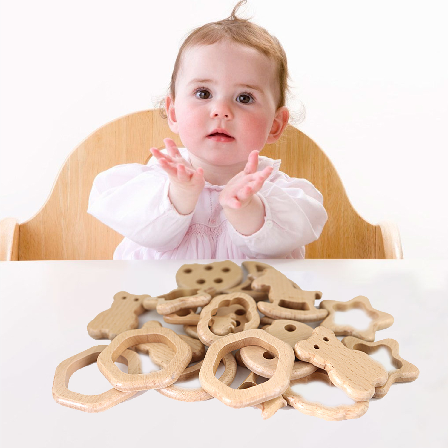 厂家直供榉木卡通动物宝宝木圈牙胶山毛榉磨牙棒婴儿磨牙玩具配件