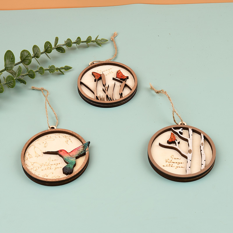 现代简约创意木质挂件工艺品吊牌摆件户外小鸟木雕挂件黄杨木装饰