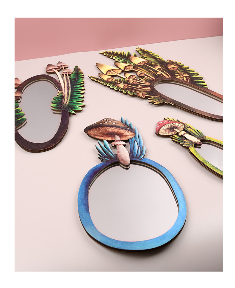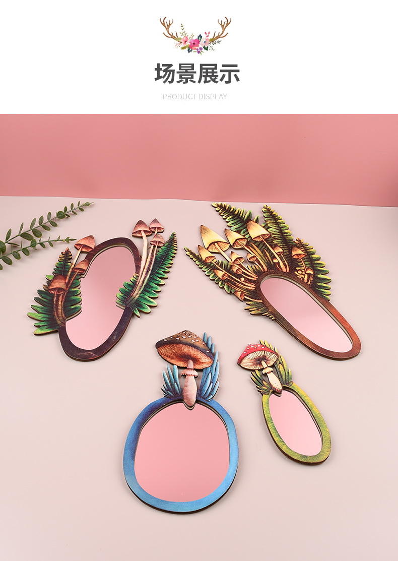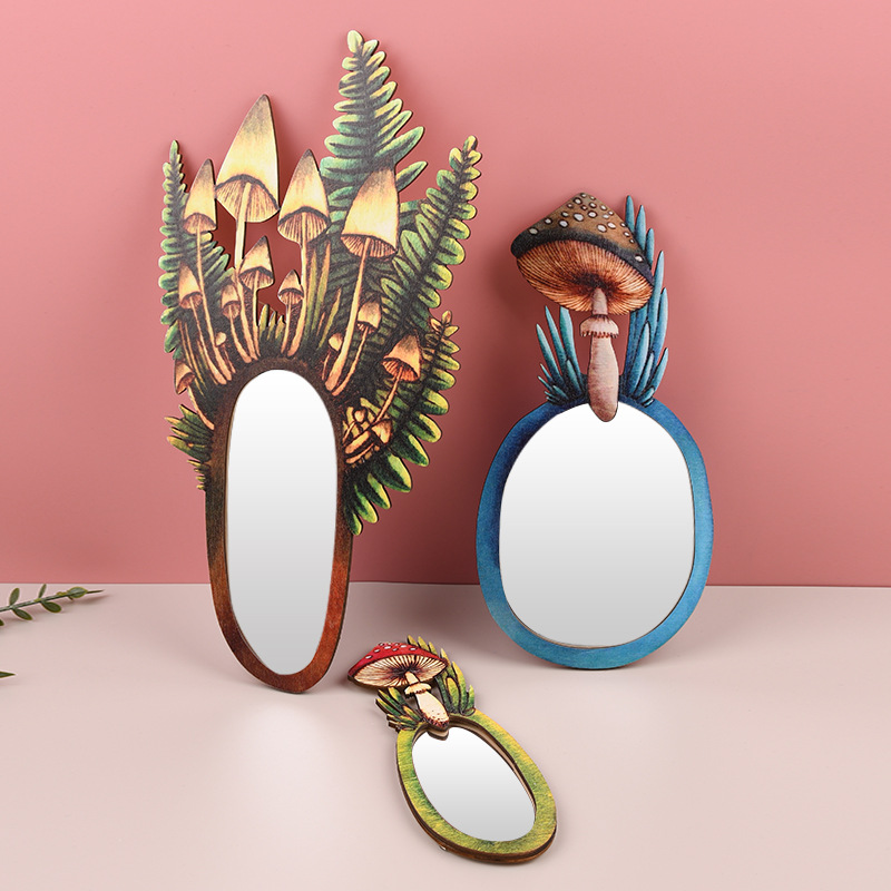 木质化妆镜家居装饰镜现代简约木质工艺品黄杨木