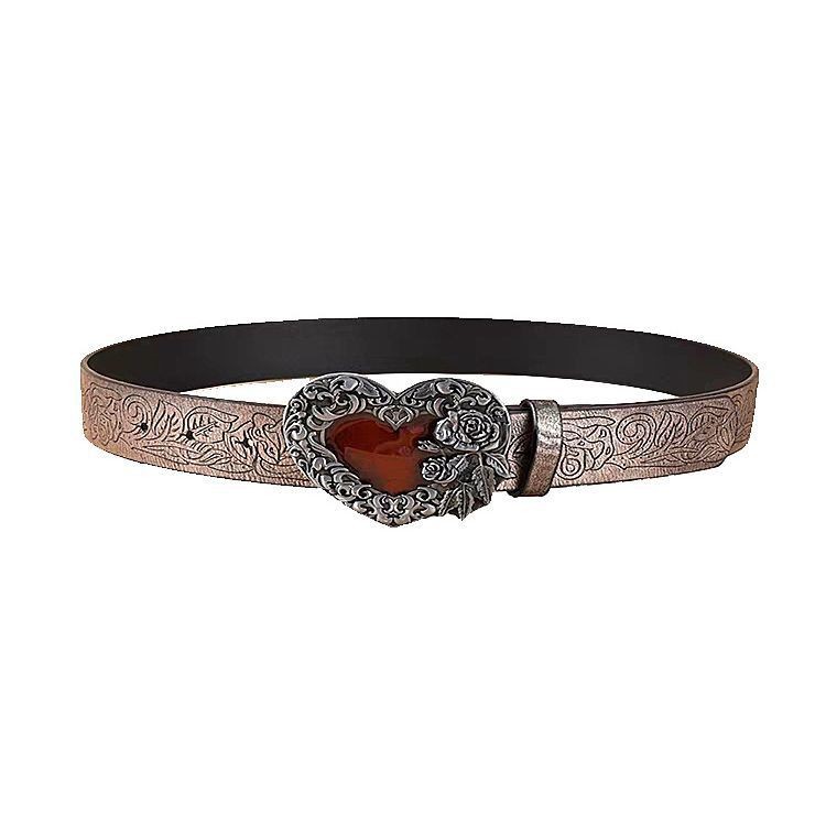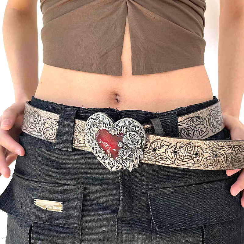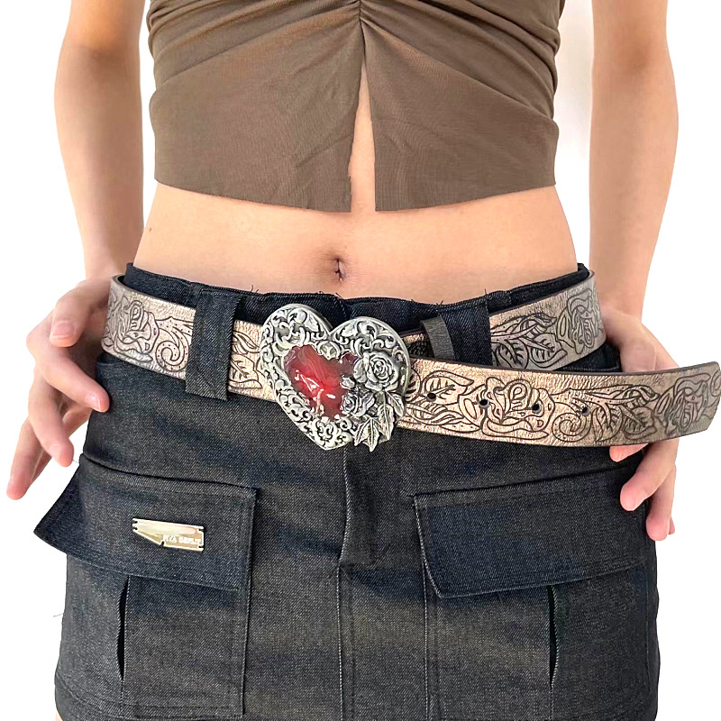 朋克风个性复古压花爱心腰带 y2k辣妹百搭哥特暗黑风皮带男女同款