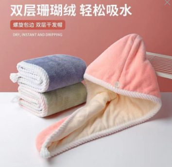 珊瑚绒吸水干发帽成人学生儿童包头毛巾速干包边长头发双层