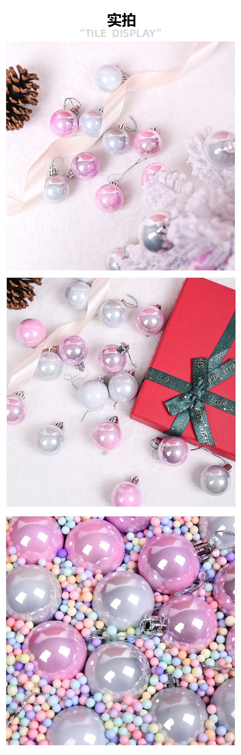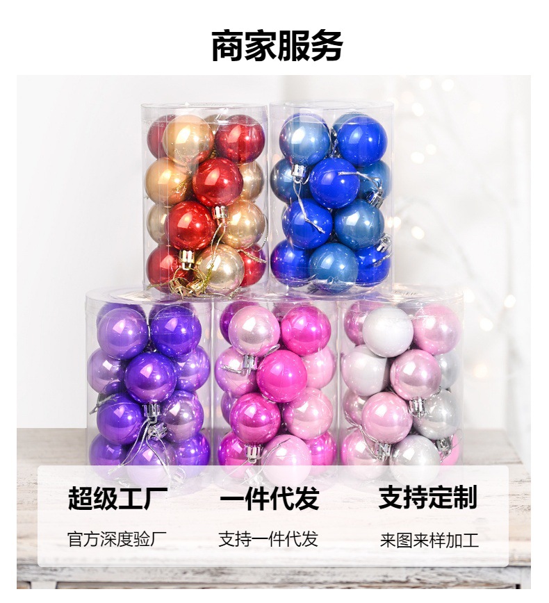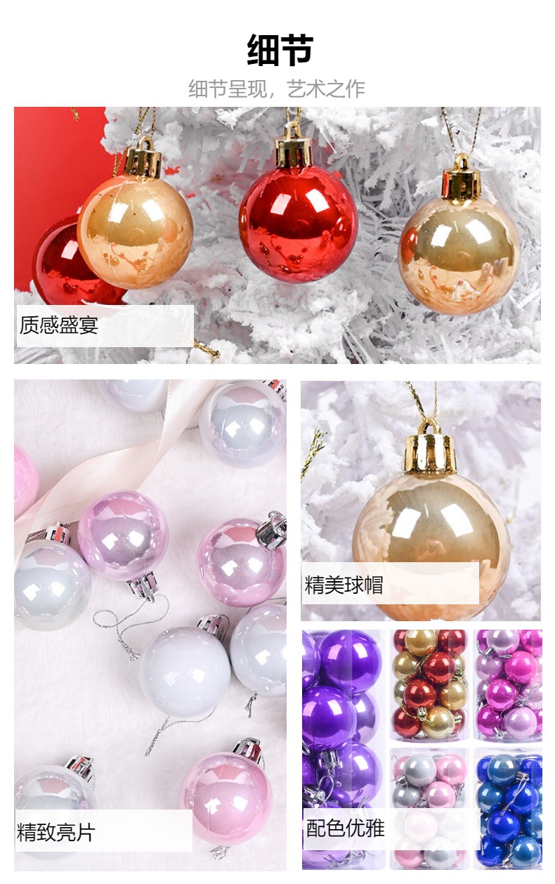 跨境圣诞节装饰品4/6/8/10CM塑料树球新款挂件挂饰亮光珠光圣诞球