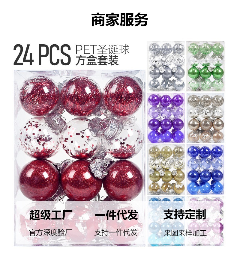 圣诞节装饰品6CM彩色塑料派对布置吊球挂件摆件挂球PET透明圣诞球