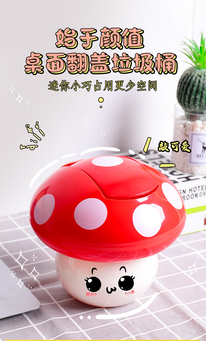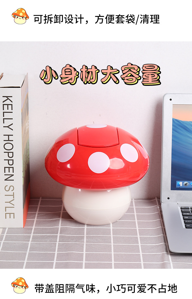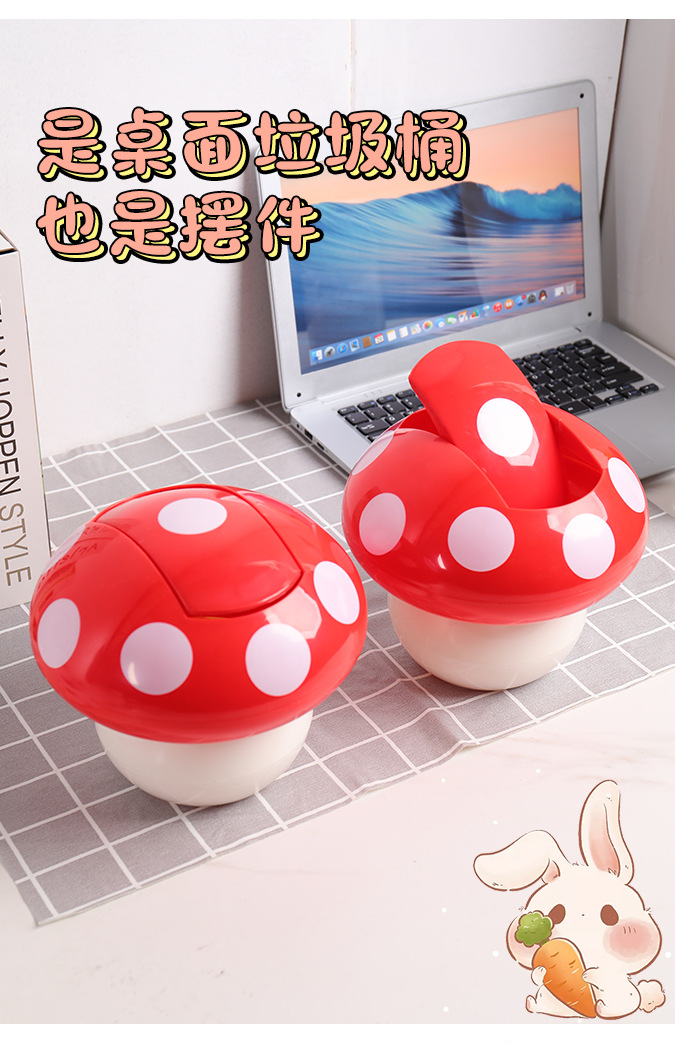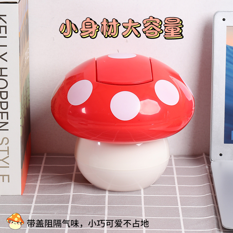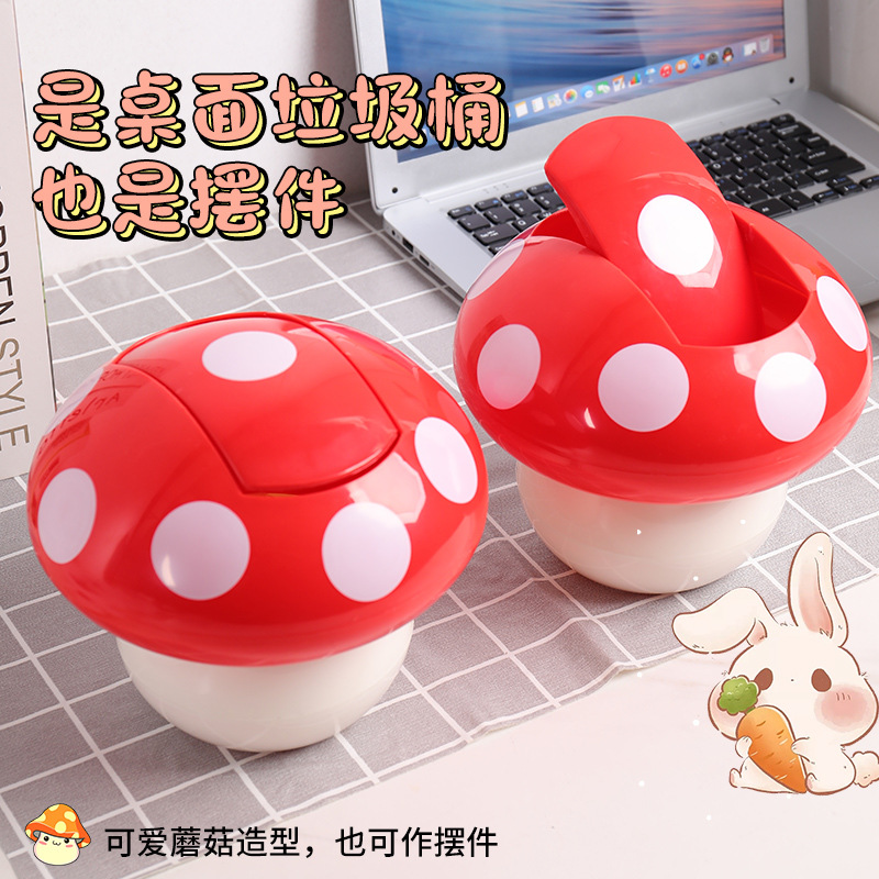桌面垃圾桶学生书桌办公室桌上带盖收纳桶可爱创意迷你蘑菇多功能