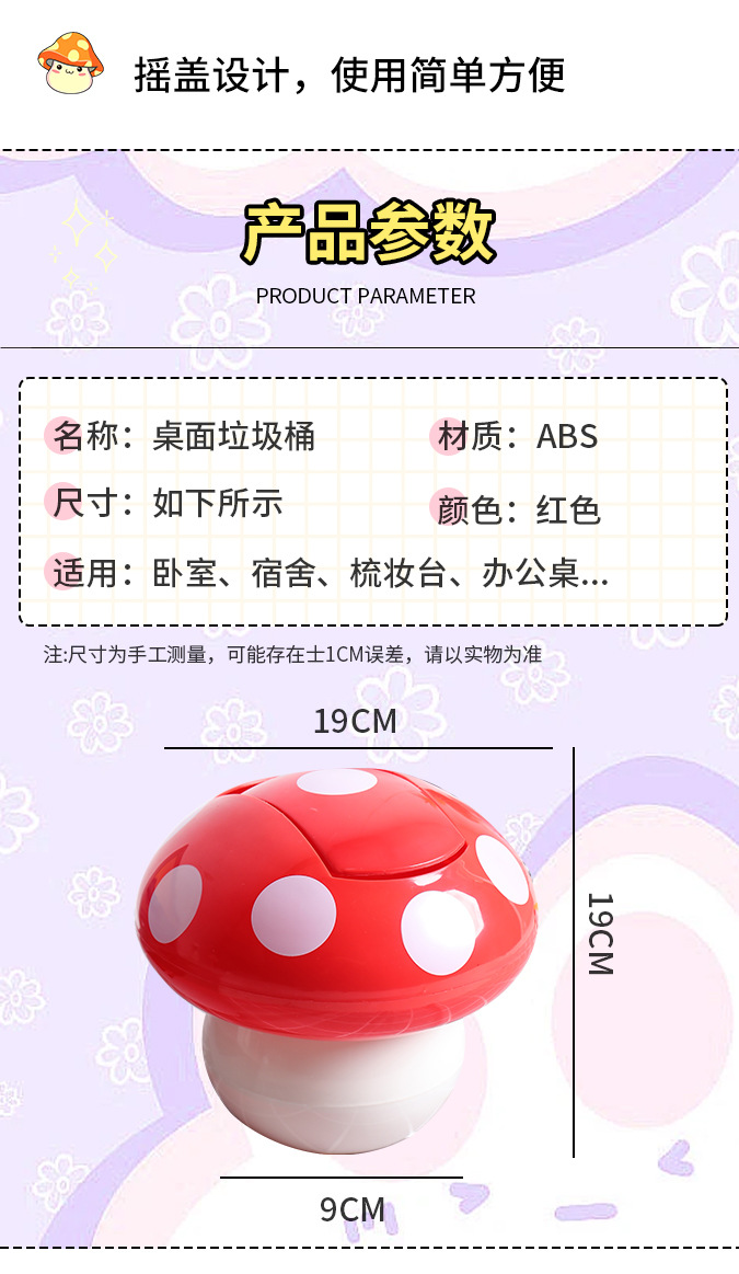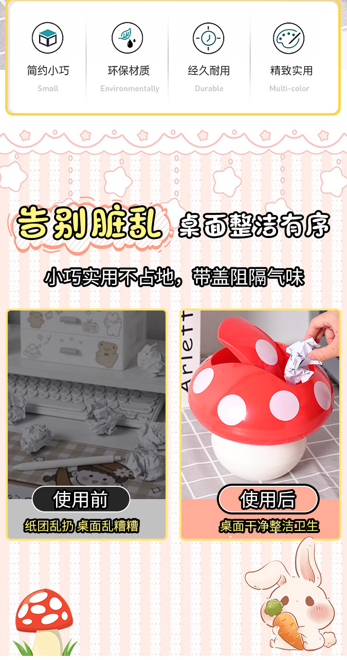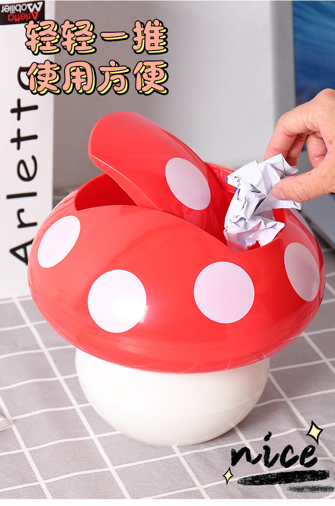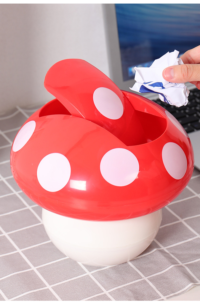 桌面垃圾桶学生书桌办公室桌上带盖收纳桶可爱创意迷你蘑菇多功能