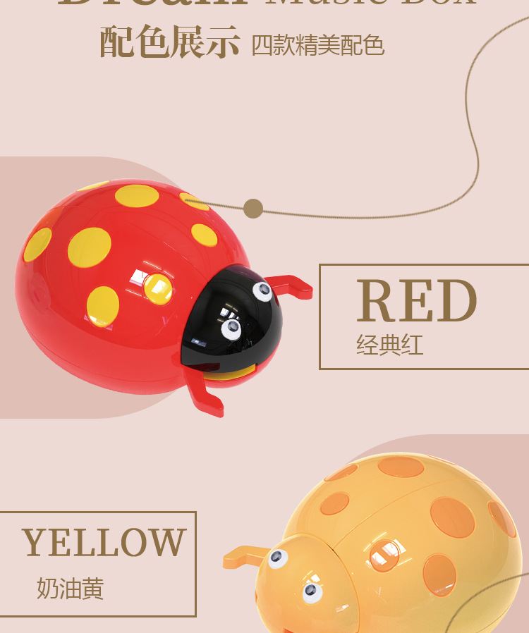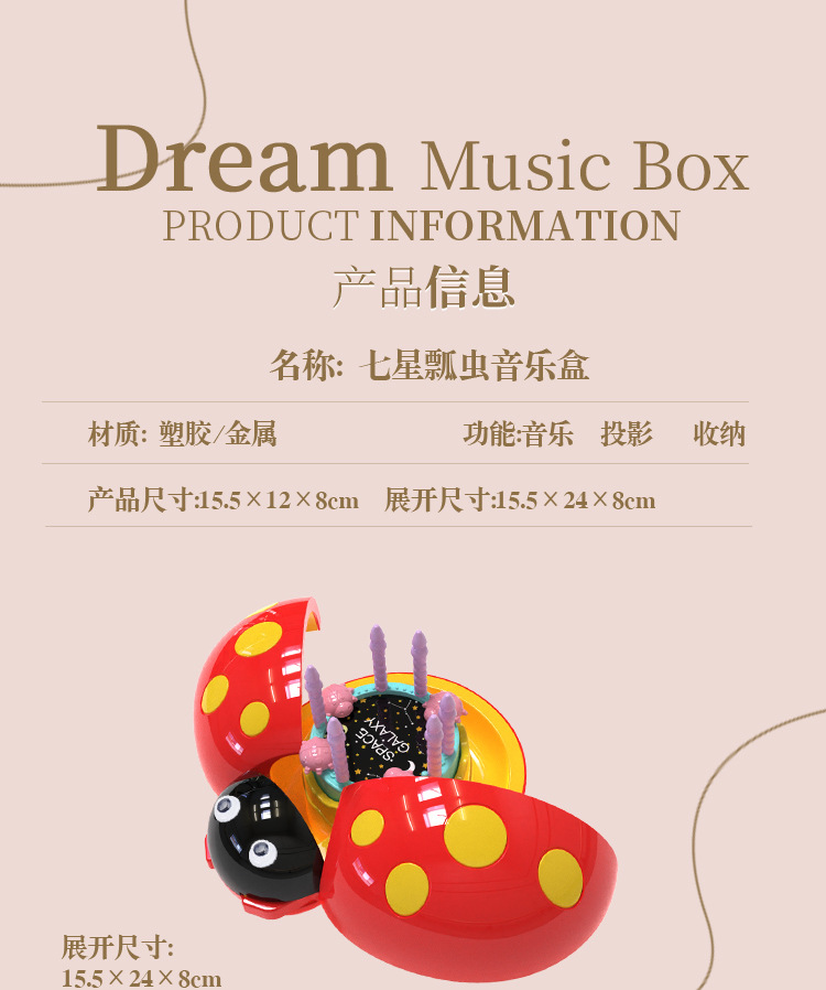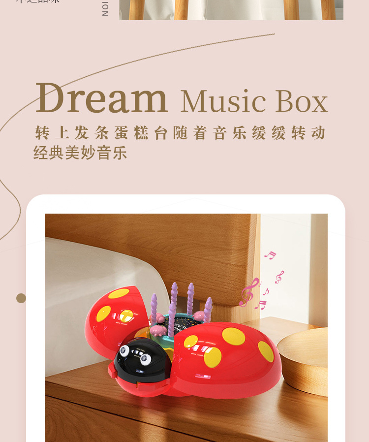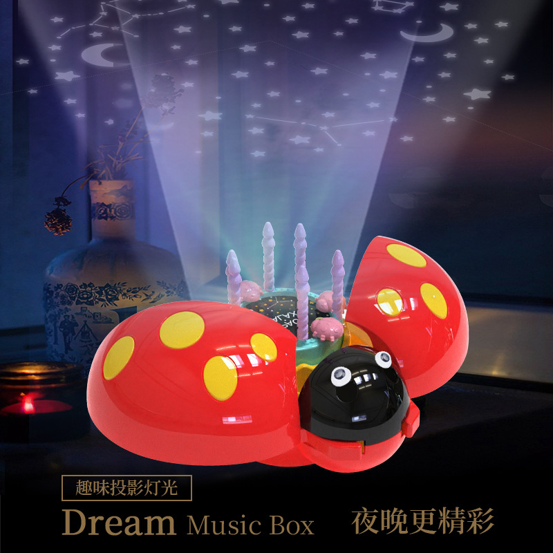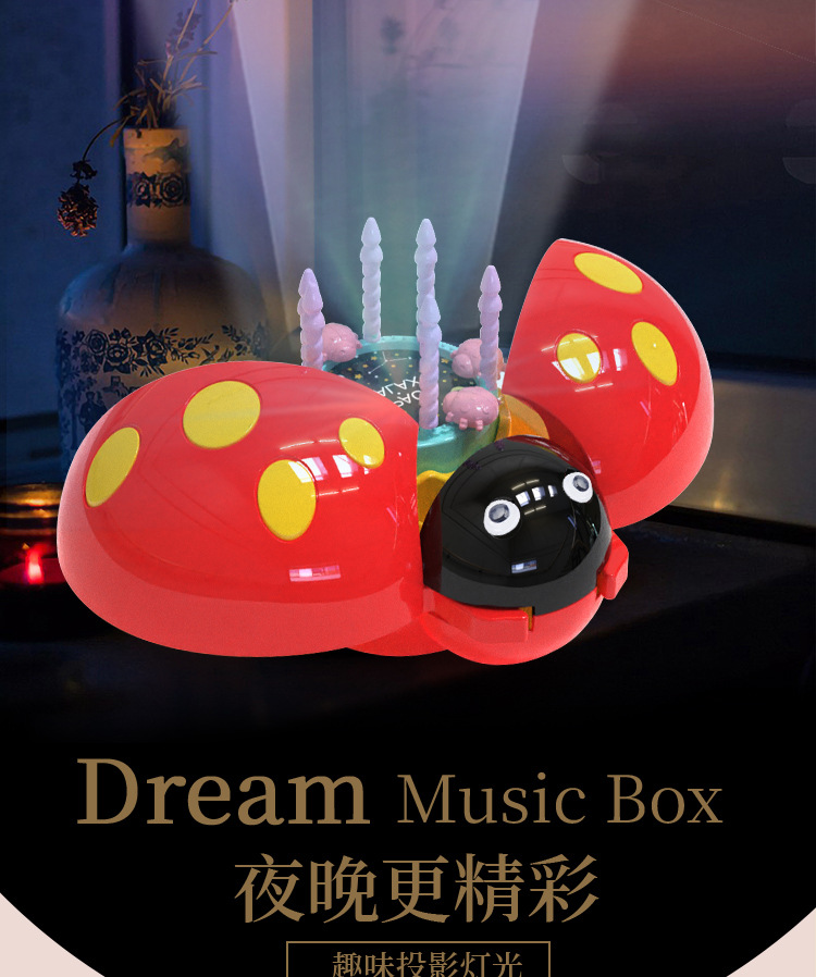 瓢虫灯光旋转音乐盒 儿童节生日小礼物 家居桌面摆件首饰盒八音琴