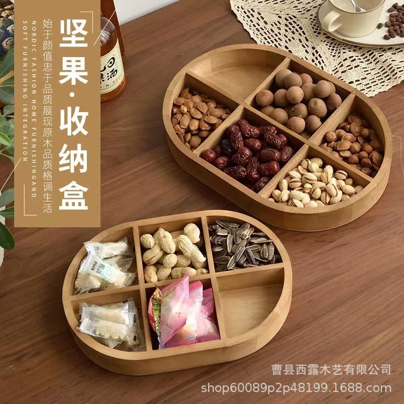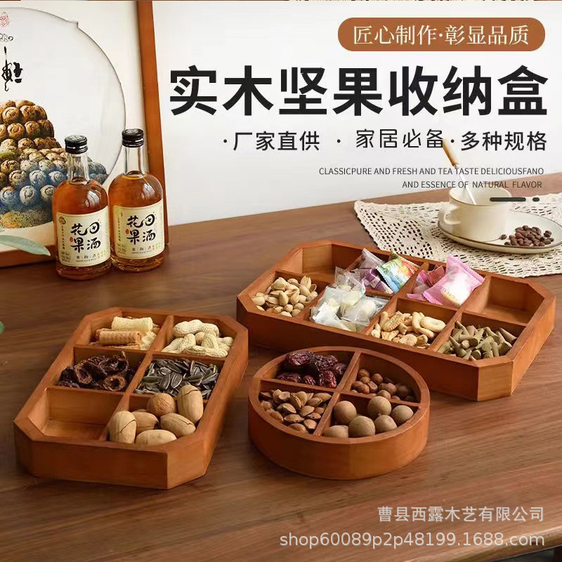 木质干果盒家用客厅分格茶盘桌面零食干果盒桌面化妆品首饰收纳盒