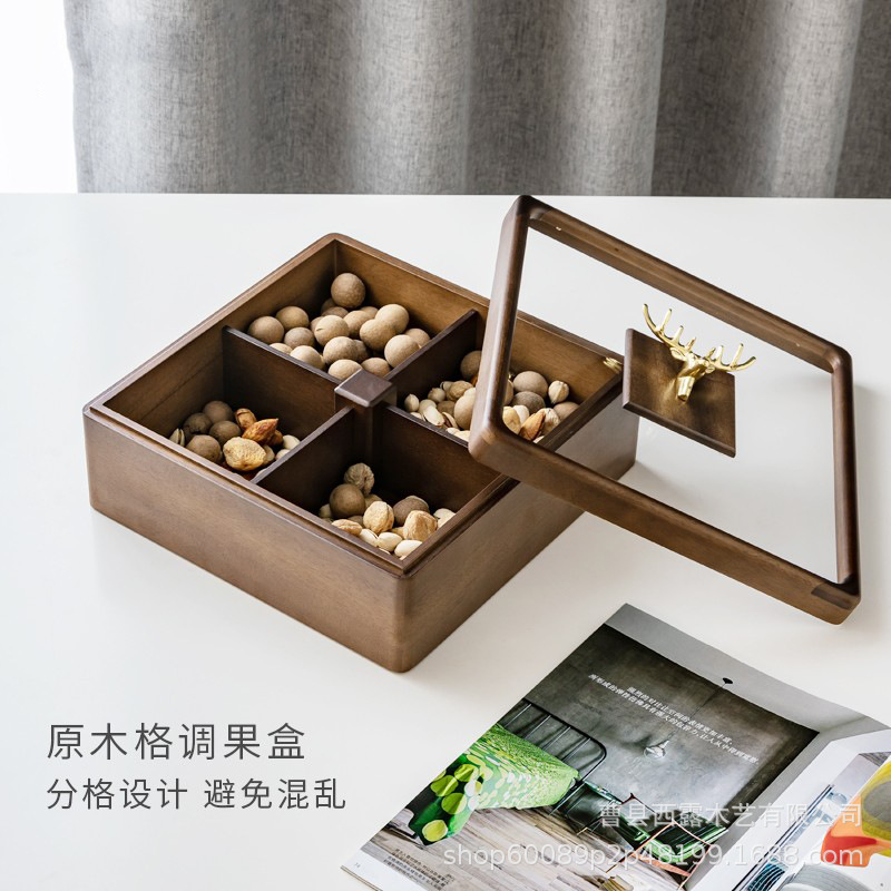 实木干果盘创意轻奢家用干果盒客厅茶几零食糖果坚果干果收纳盒盘