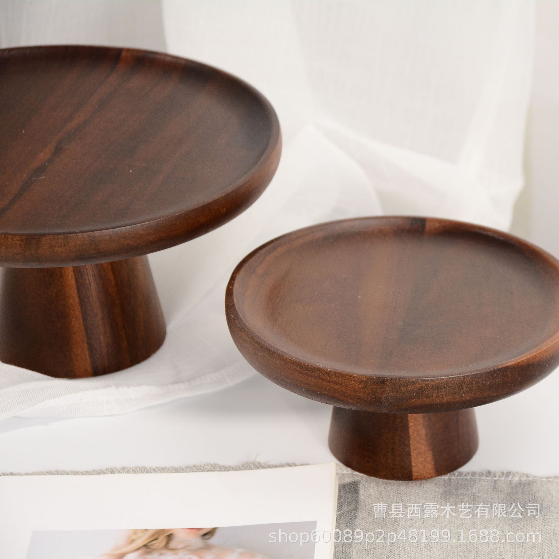 复古相思木蛋糕托盘家用客厅点心盘甜品台展示架木质高脚果盘ins