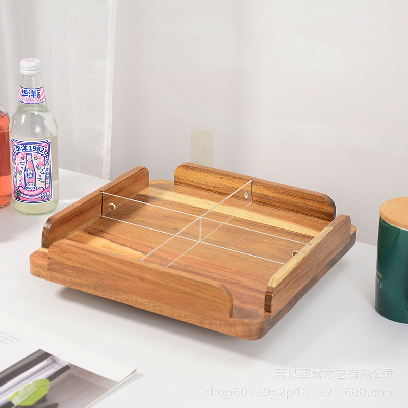 干果托盘分格盘桌面点心盘欧式旋转蛋糕架木质甜品台摆件单层盘