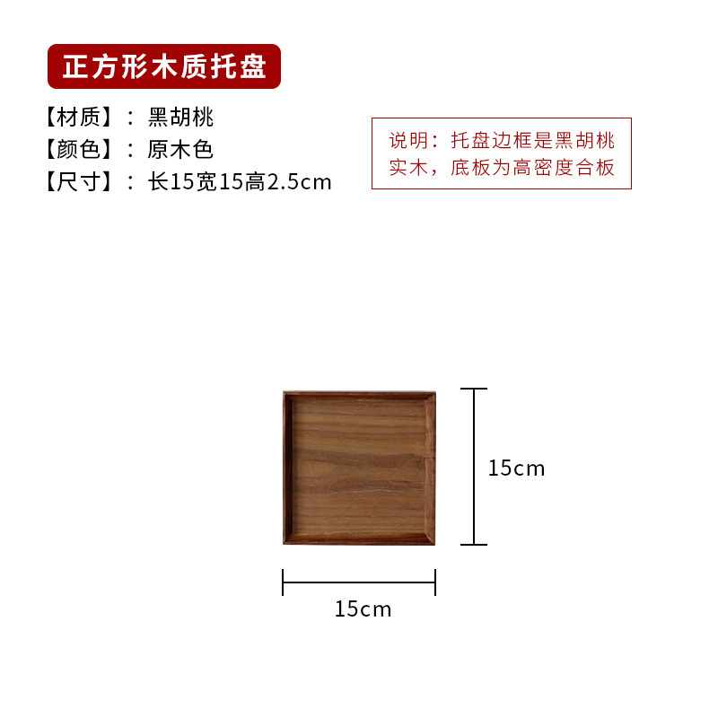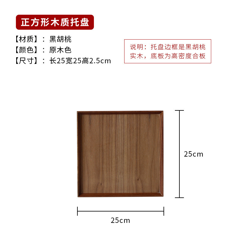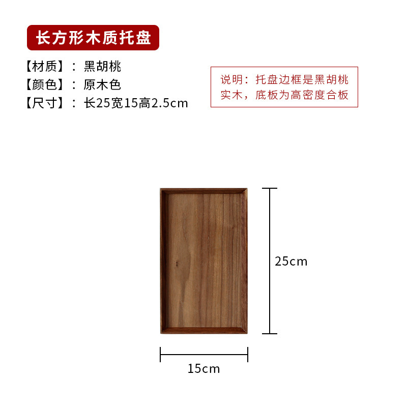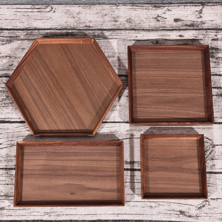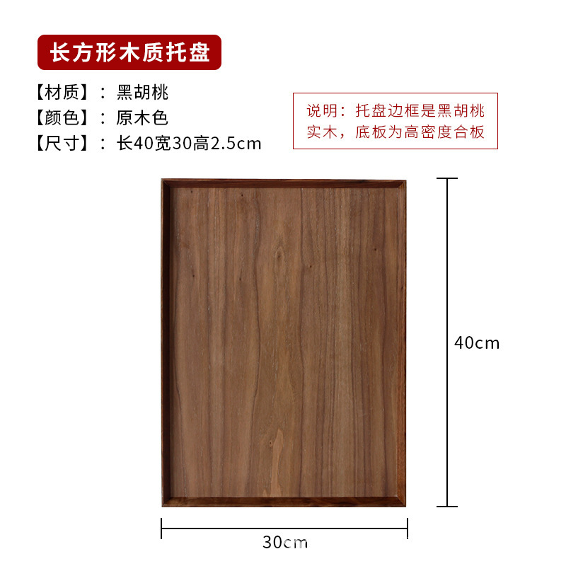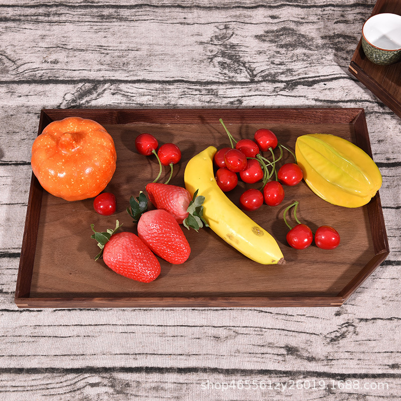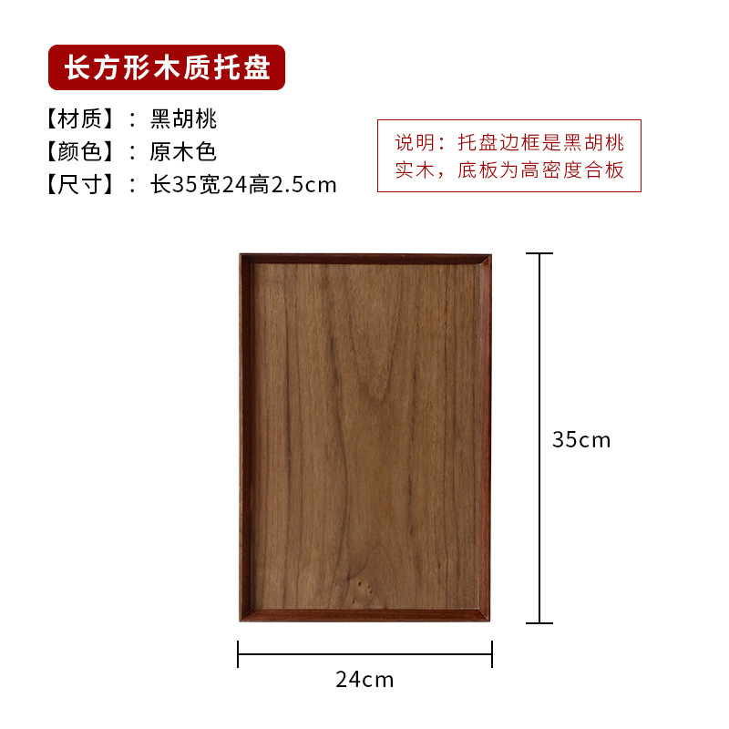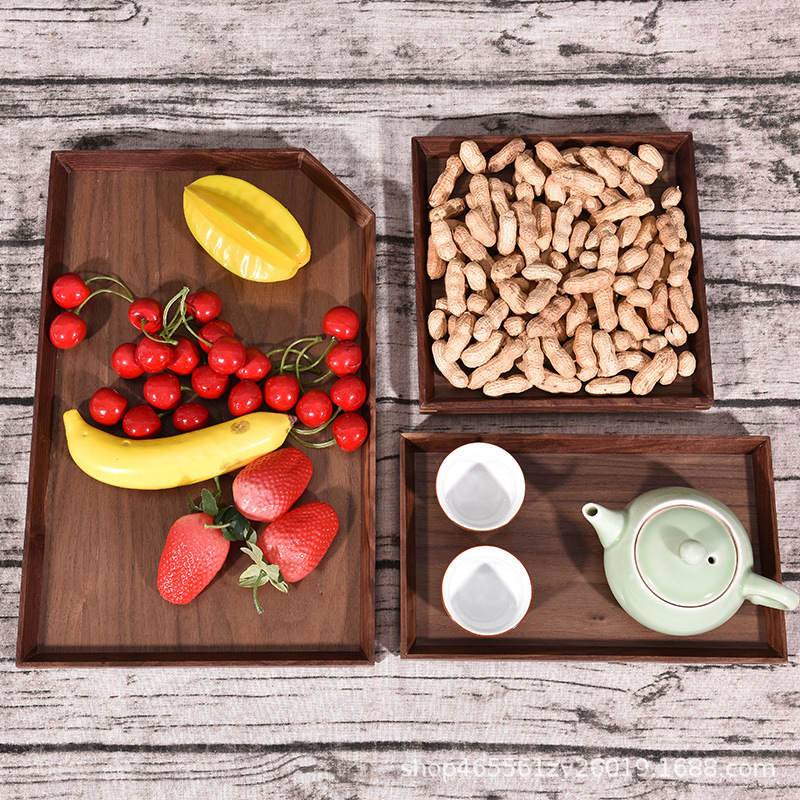 日式黑胡桃托盘木质点心餐盘酒店茶盘家用长方形果盘木制餐盘实木