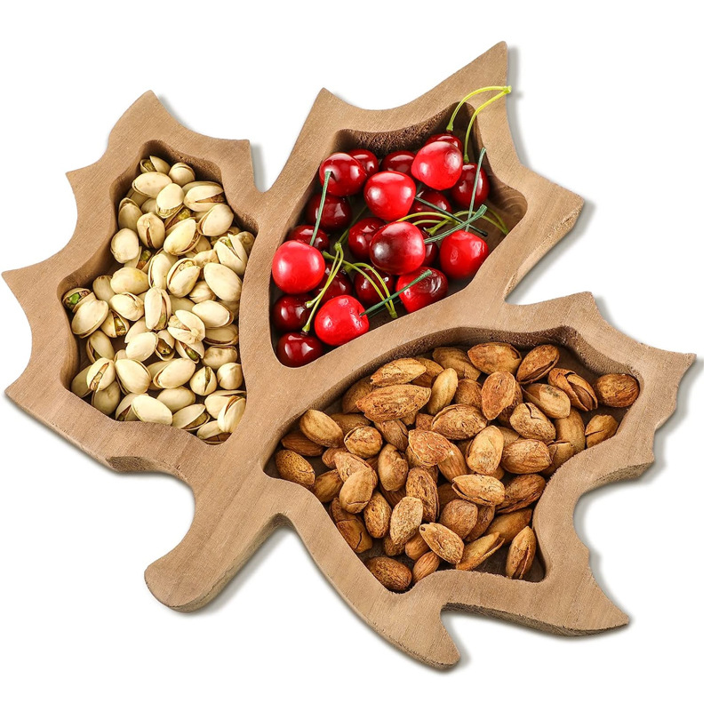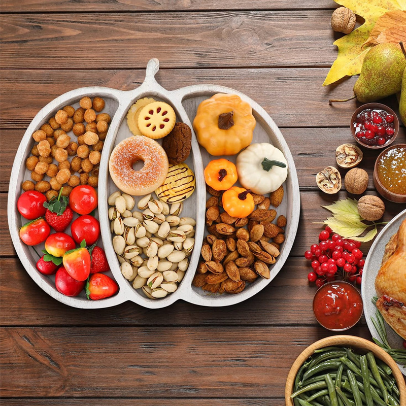 实木南瓜造型干果托盘创意简约糖果坚果收纳盒 多分格实木零食收