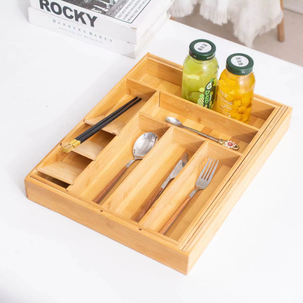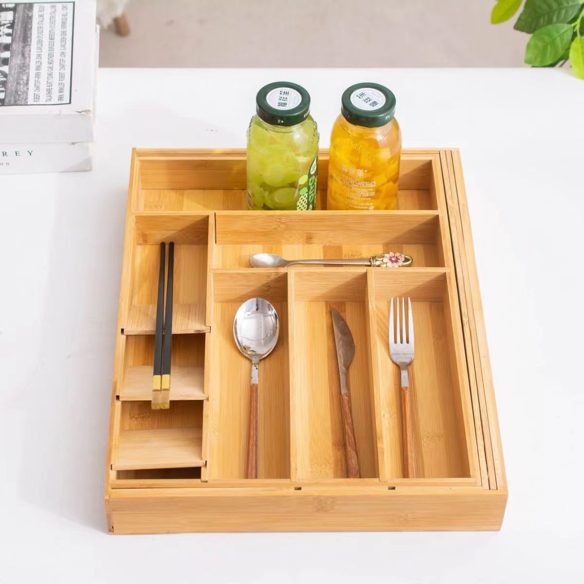厨房抽屉内置餐具整理盒 杂物化妆品文具分格收纳 桌面分格餐具盘