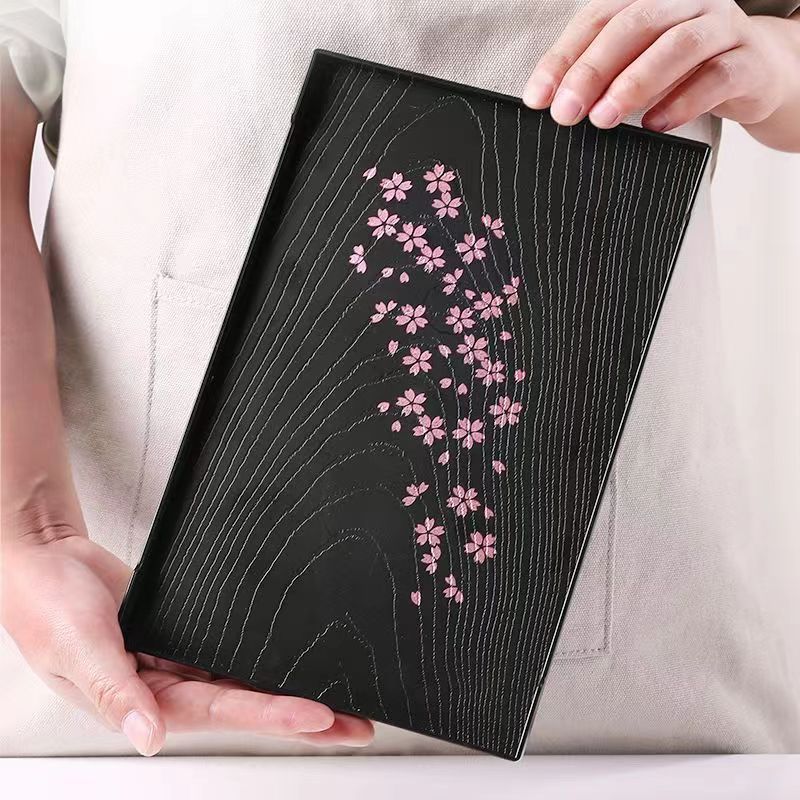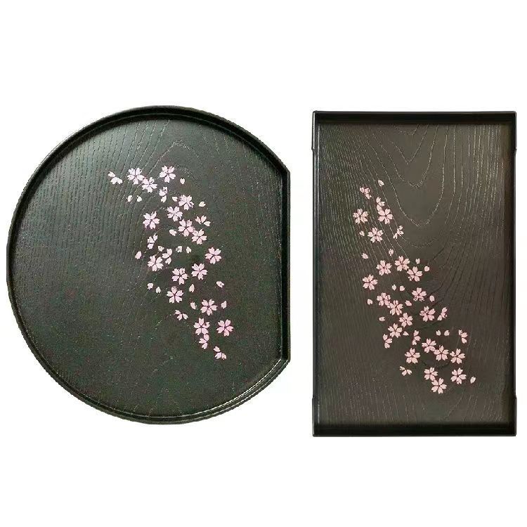 实木樱花纹托盘长方形半圆形木质托盘家居休息茶盘餐厅点餐盘