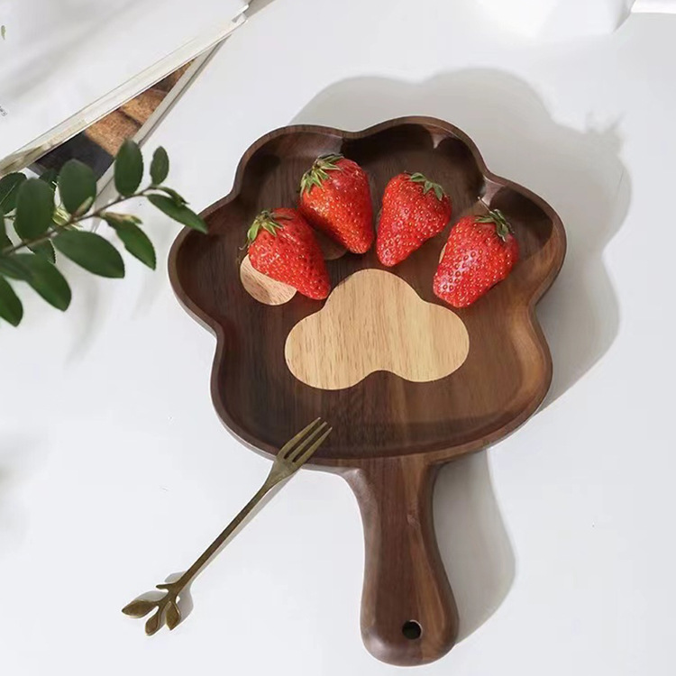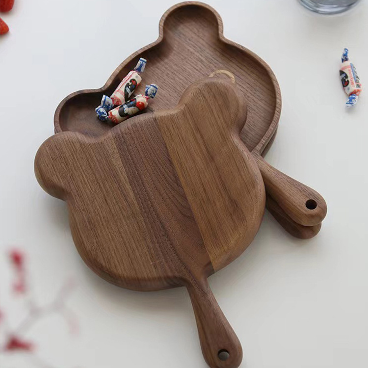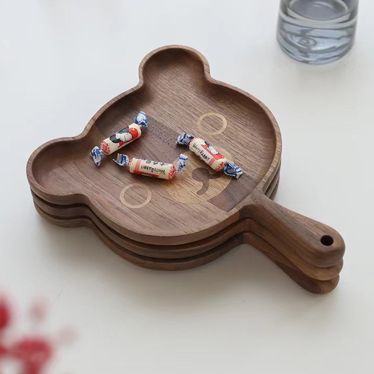 直供木制儿童卡通早餐点心盘子黑胡桃小熊餐盘个性拍摄道具盘