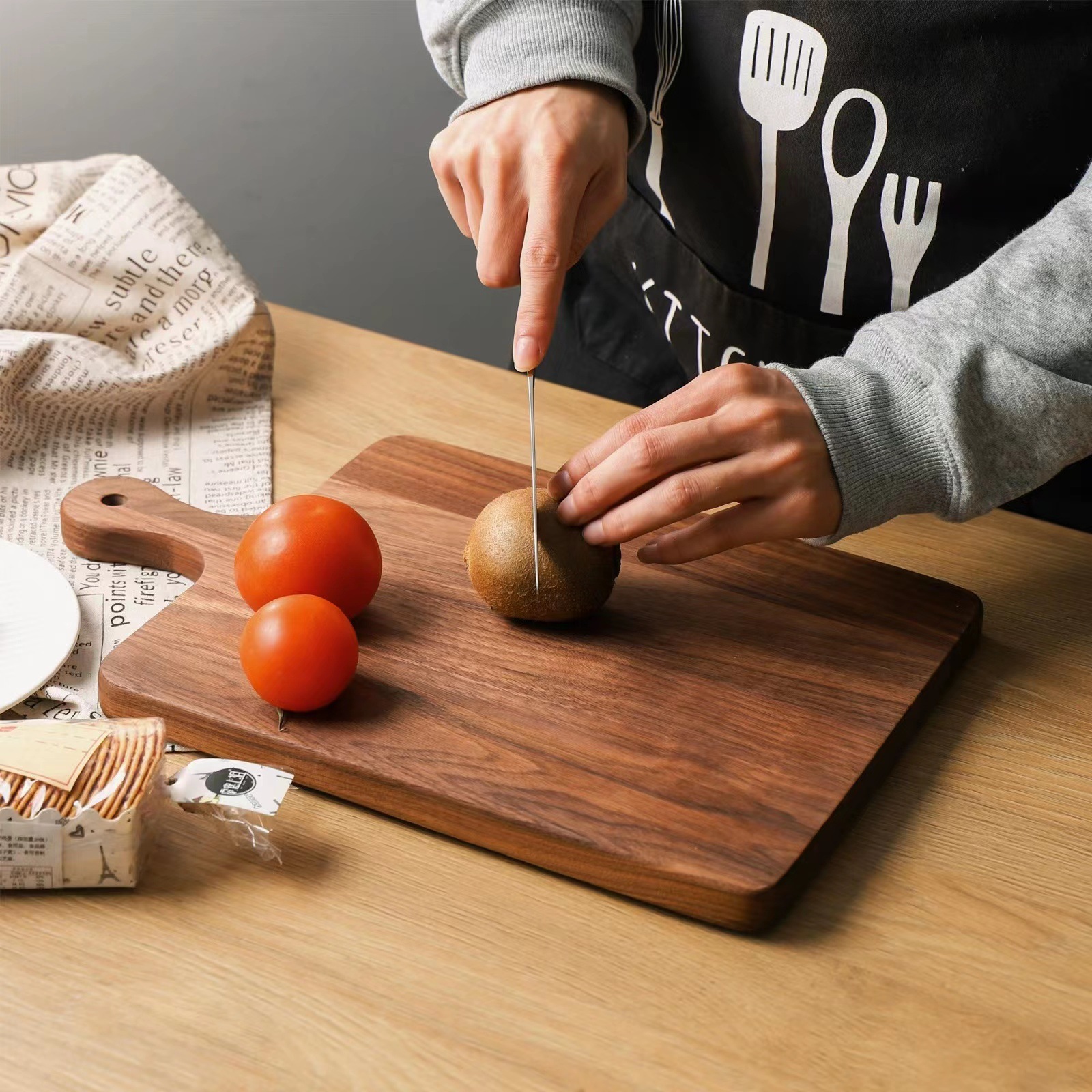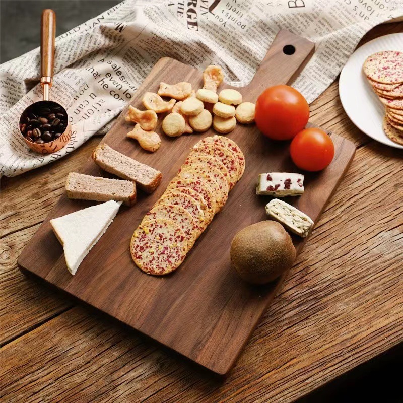 黑胡桃木砧板带把手披萨牛排面包板餐厅咖啡店木托盘家用木制托盘