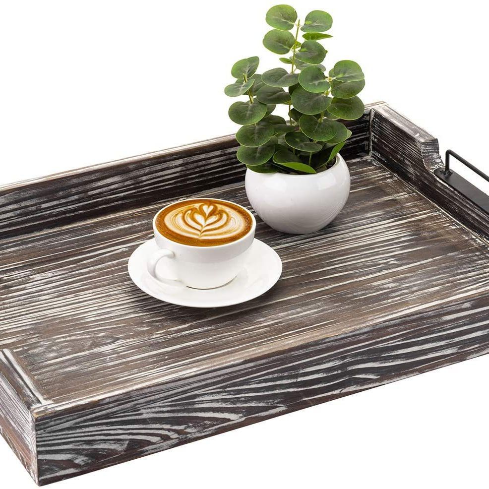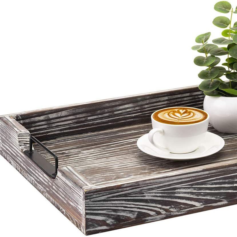 实木茶盘红酒托盘复古色金属把手茶盘木制早餐托盘酒店点餐盘可定