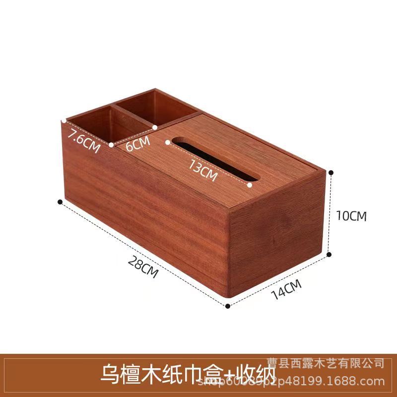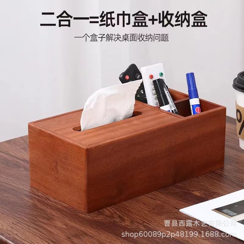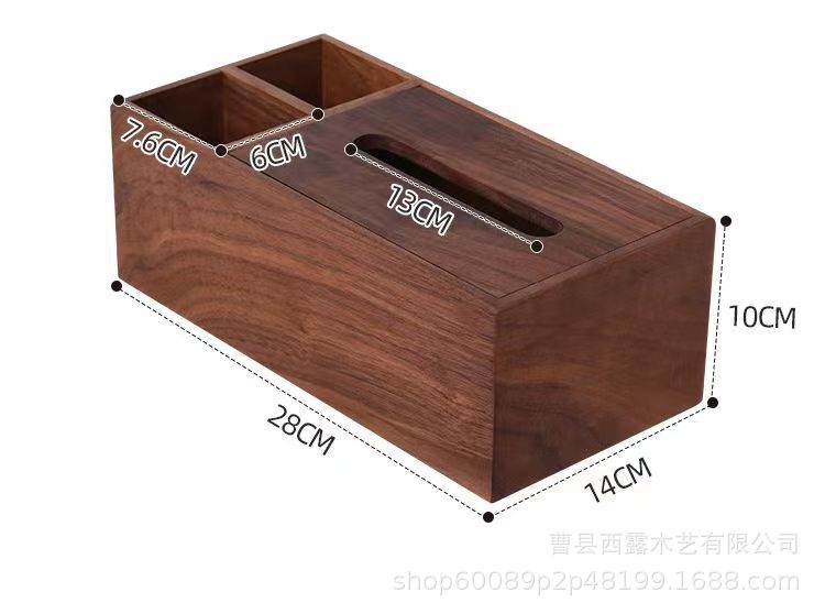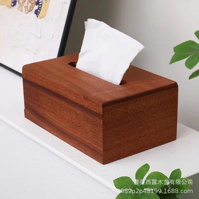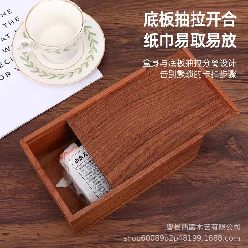 胡桃木纸巾盒桌面方形抽纸盒办公室客厅轻奢纸巾收纳盒抽拉纸盒