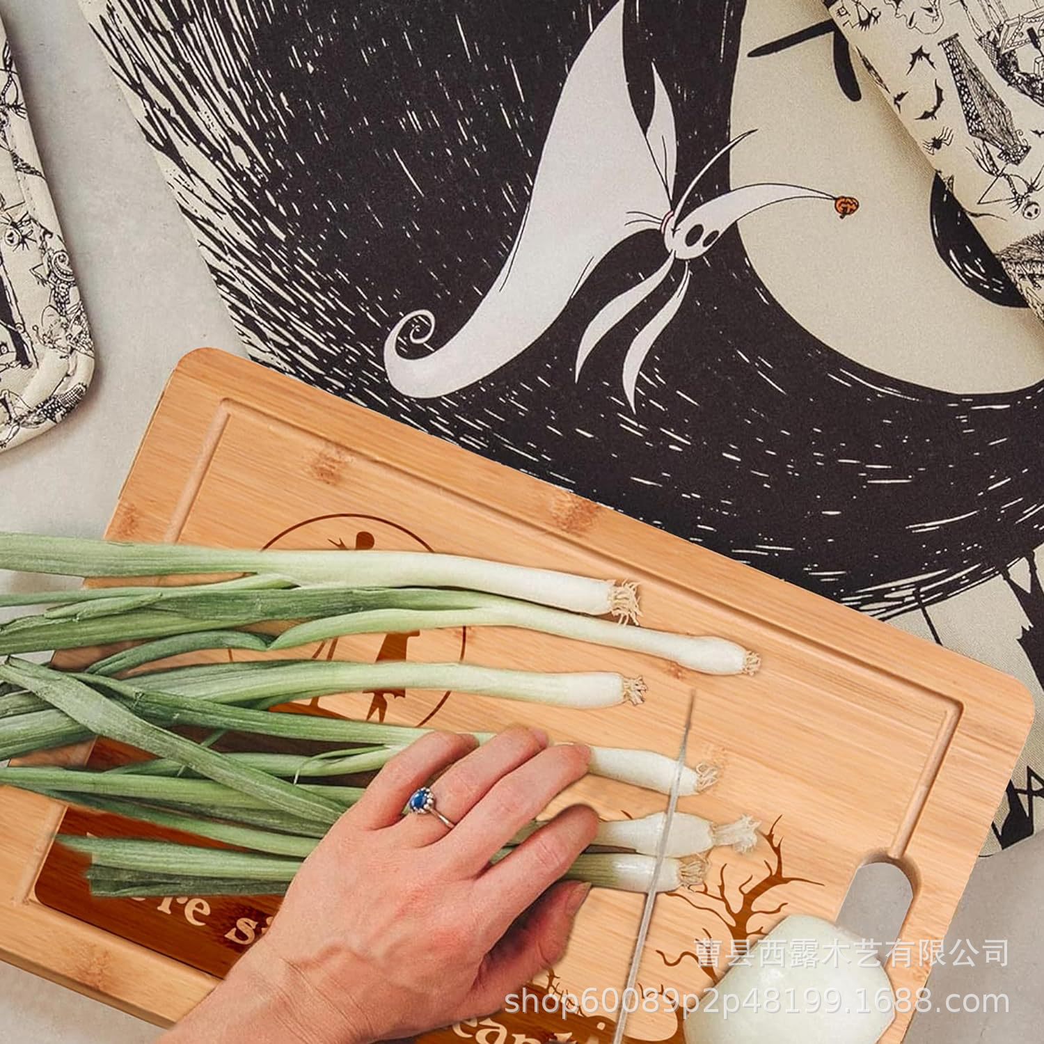 实木趣味装饰砧板跨境竹制切菜板万圣节系列创意带汁水槽案板
