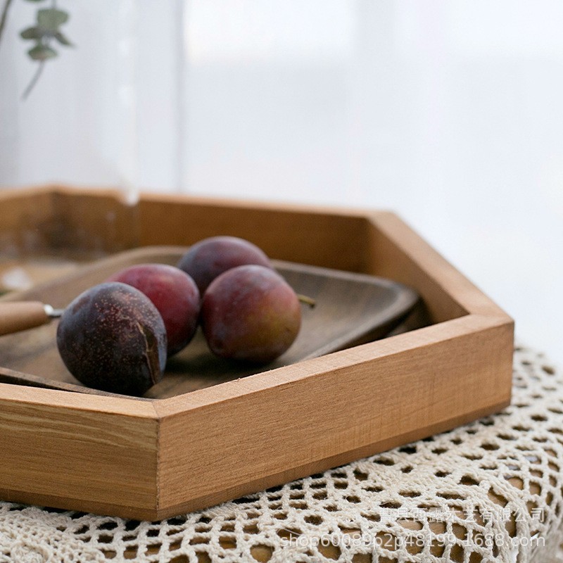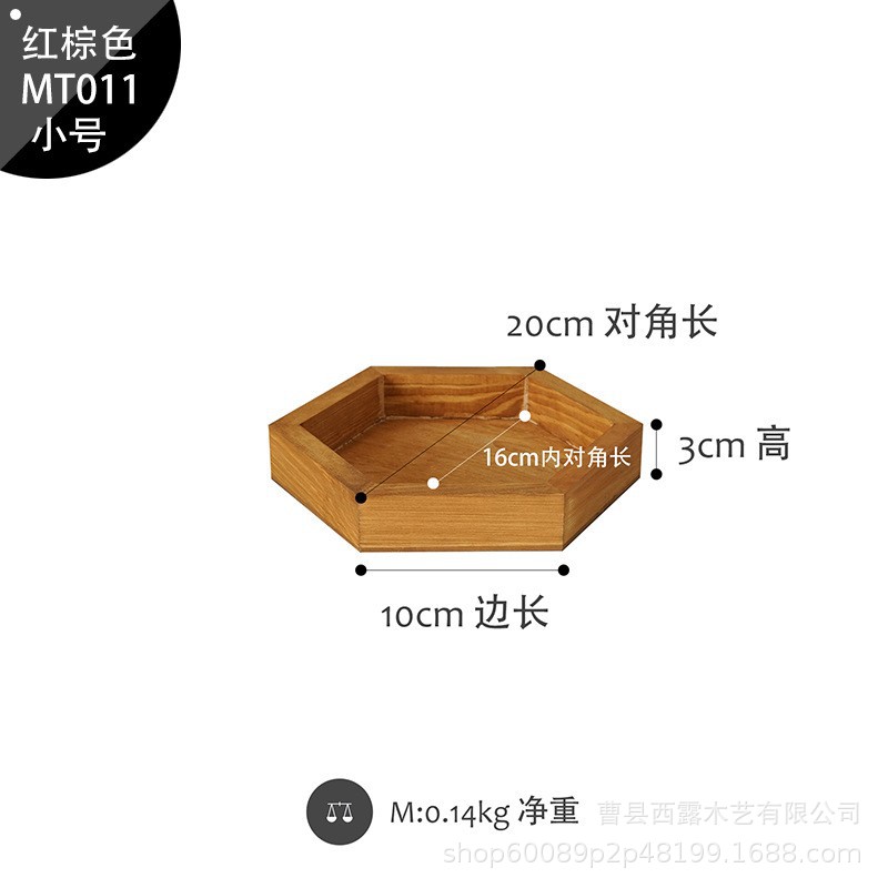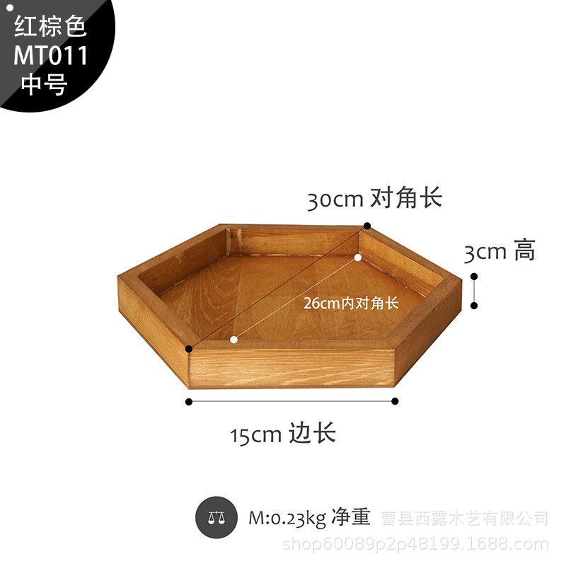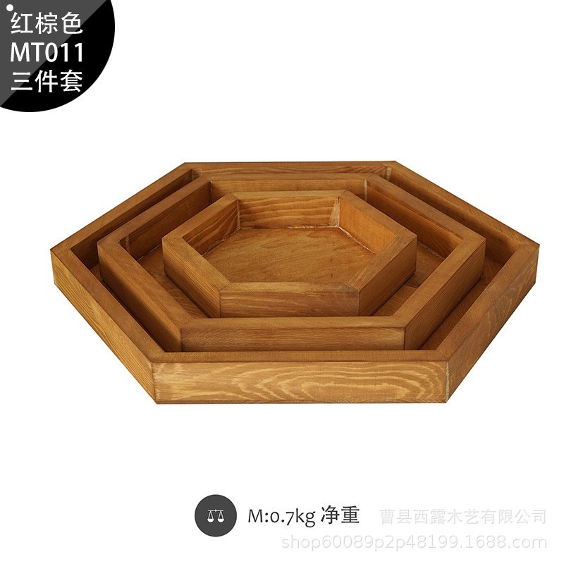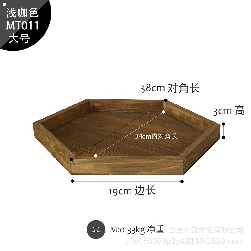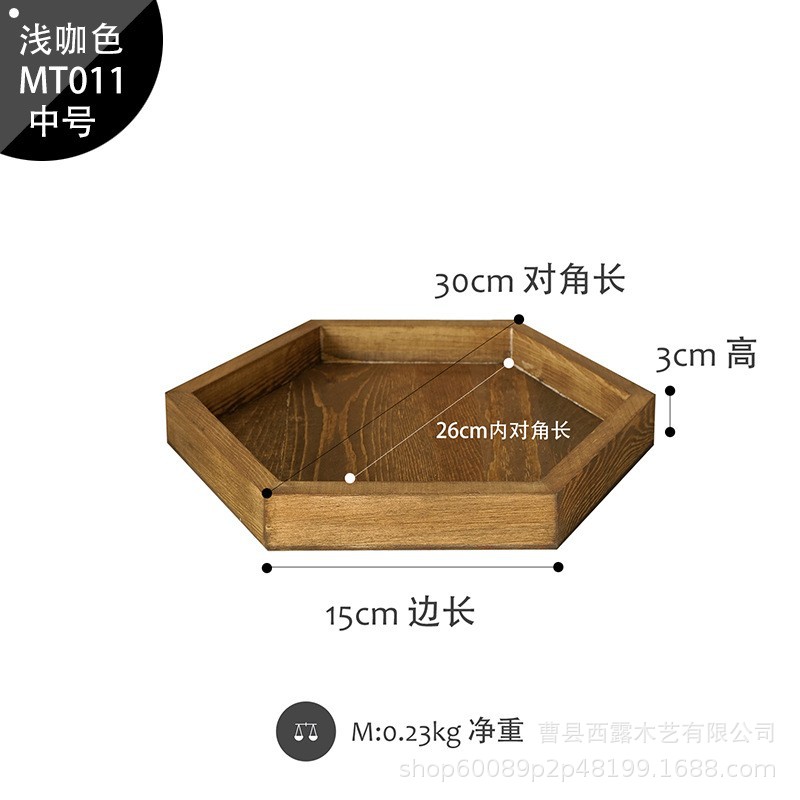 木质六边形托盘 复古做旧菱形盘子婚庆甜品台蛋糕盘 饰品拍照道具