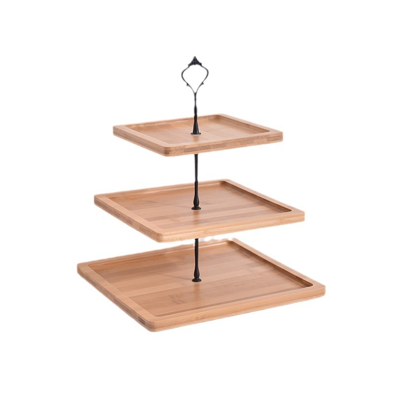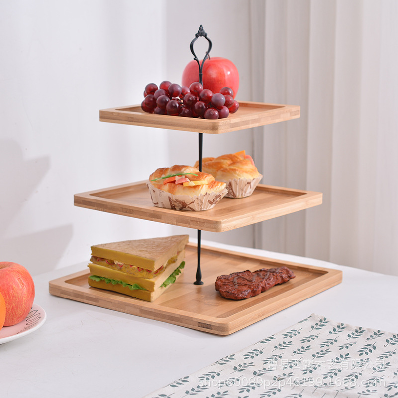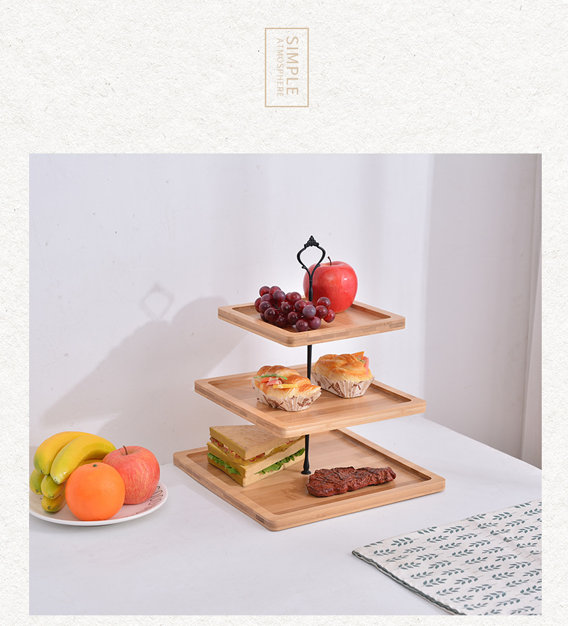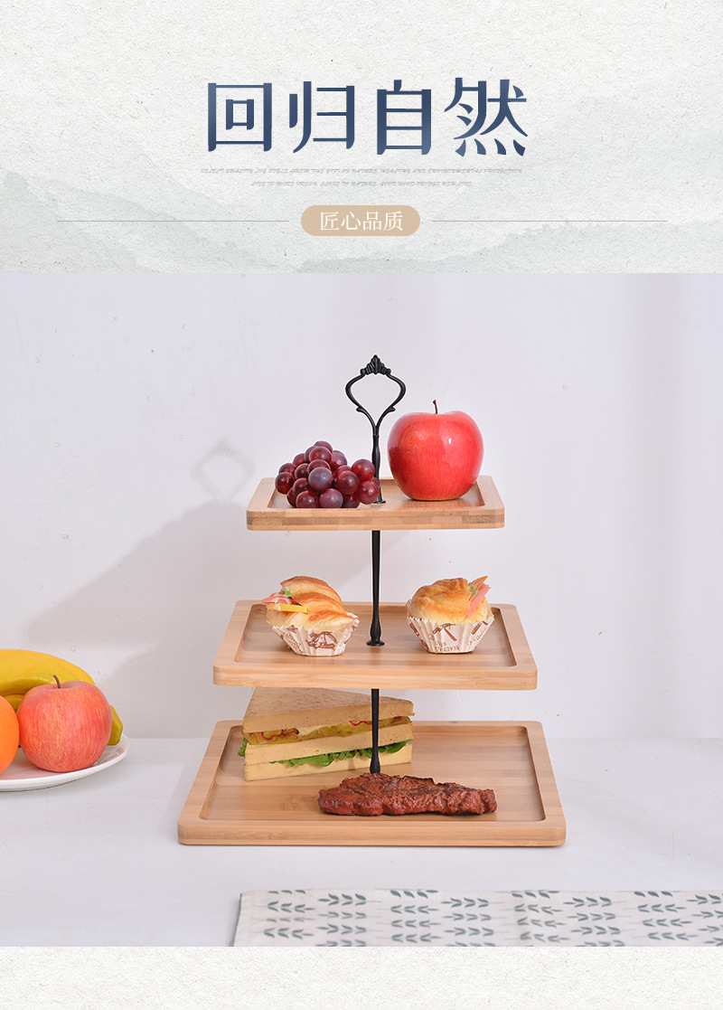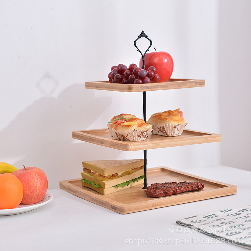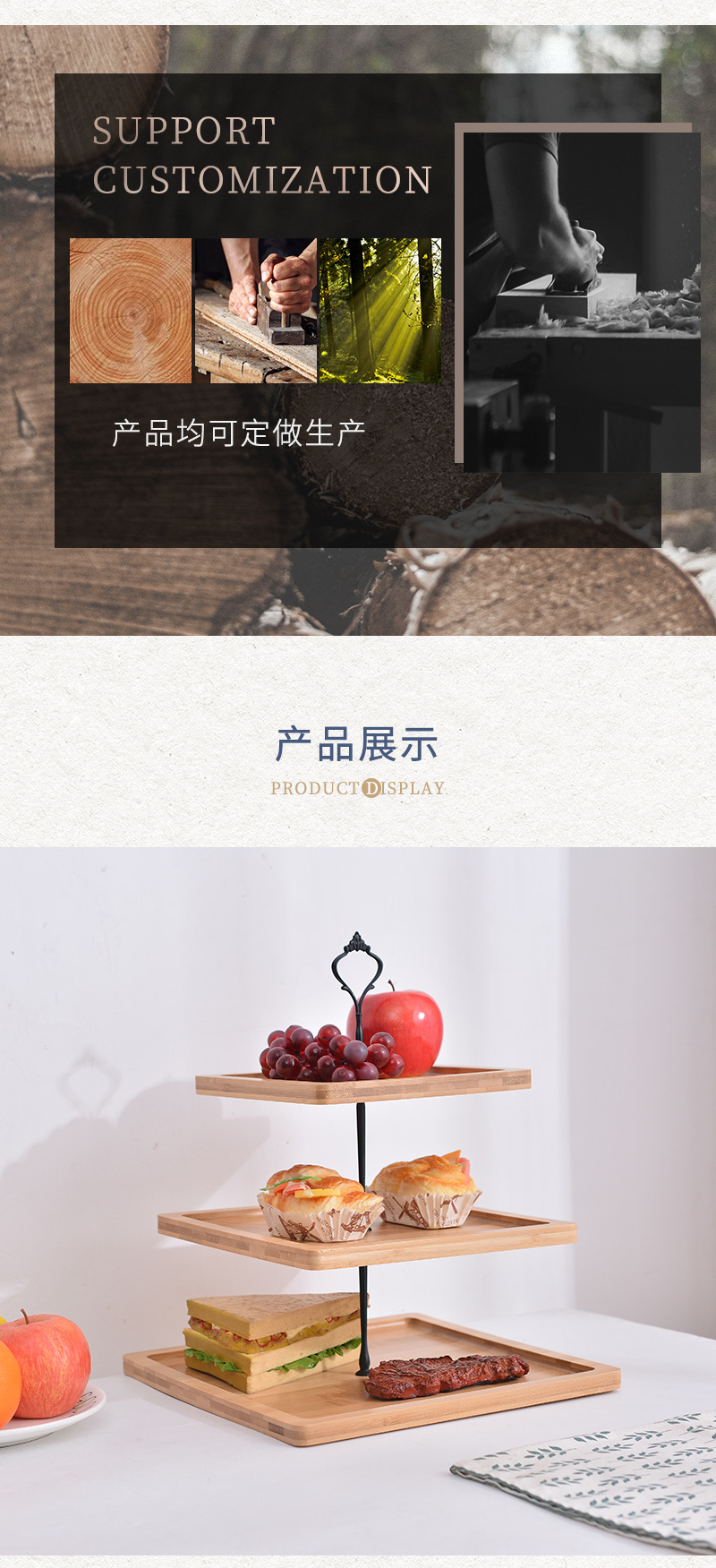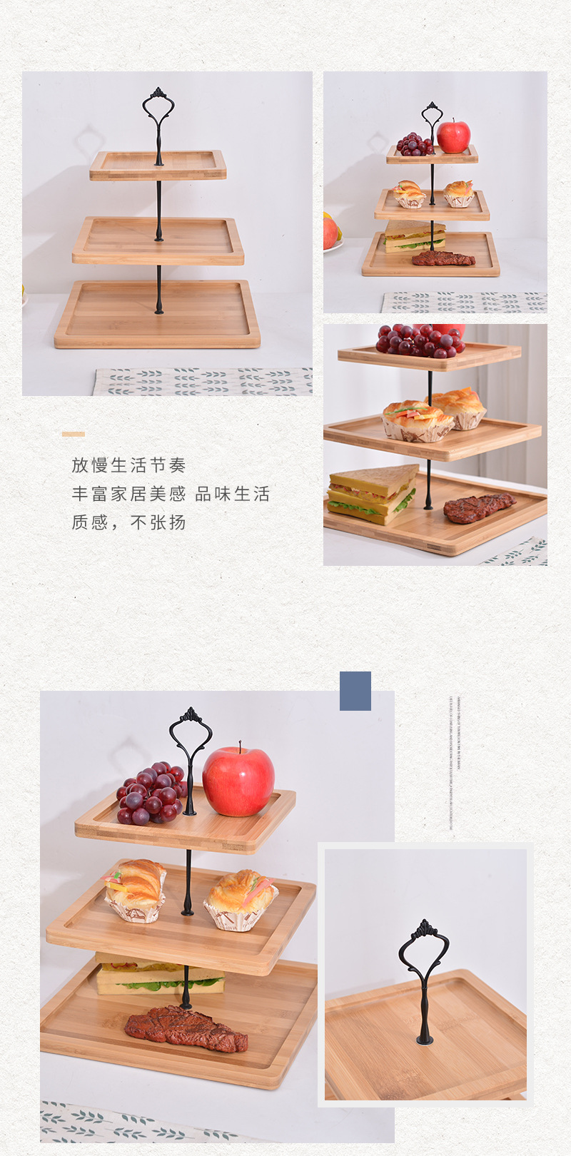 三层甜点盘多层竹木串盘欧式下午茶婚礼蛋糕盘生日水果盘展示架