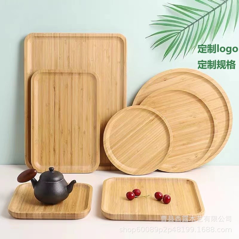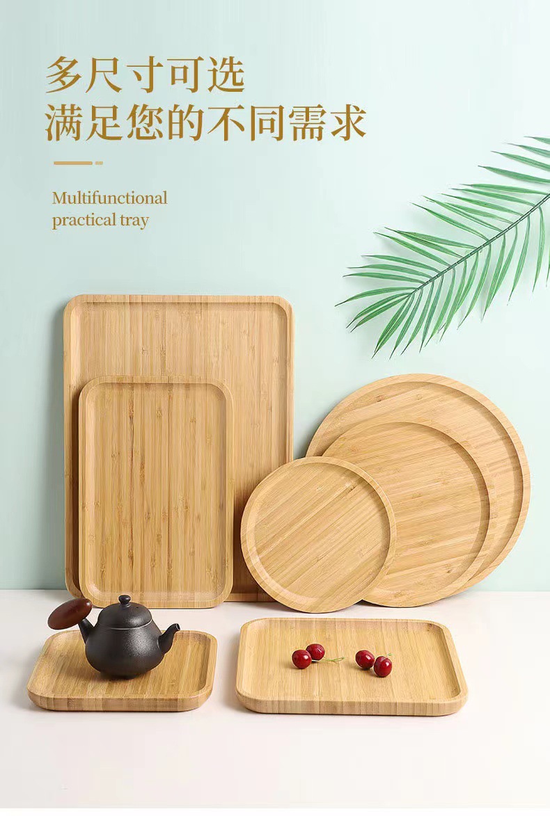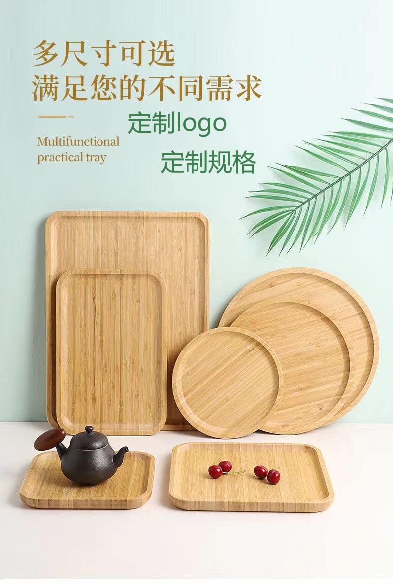 多规格竹制木托盘长方形家用功夫茶具圆盘茶盘水果烧烤小吃餐具盘
