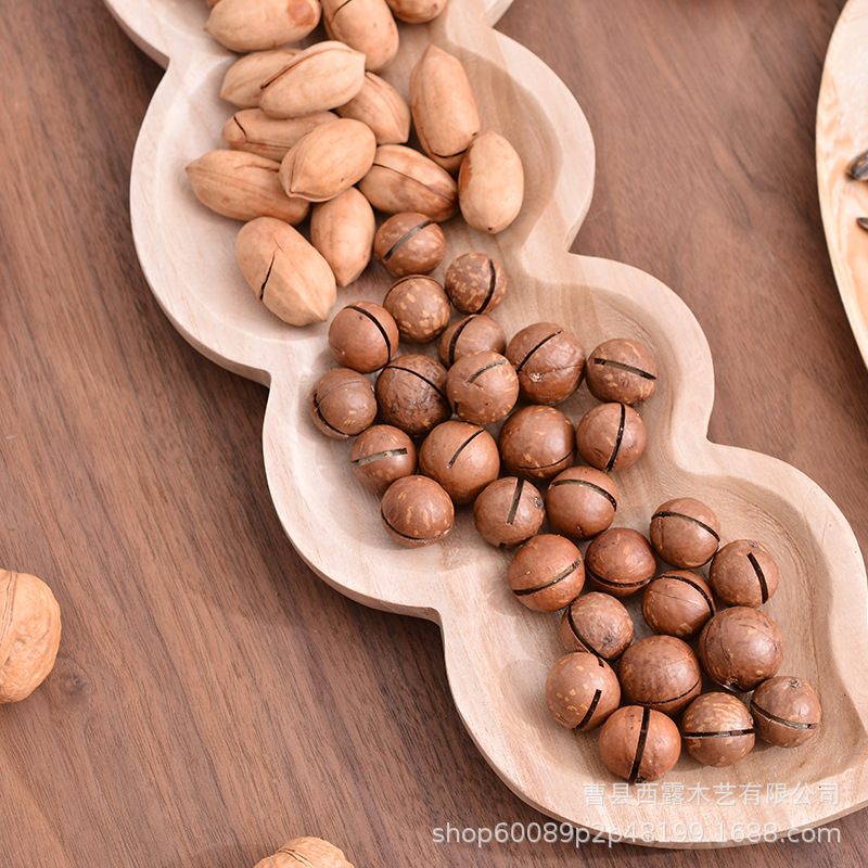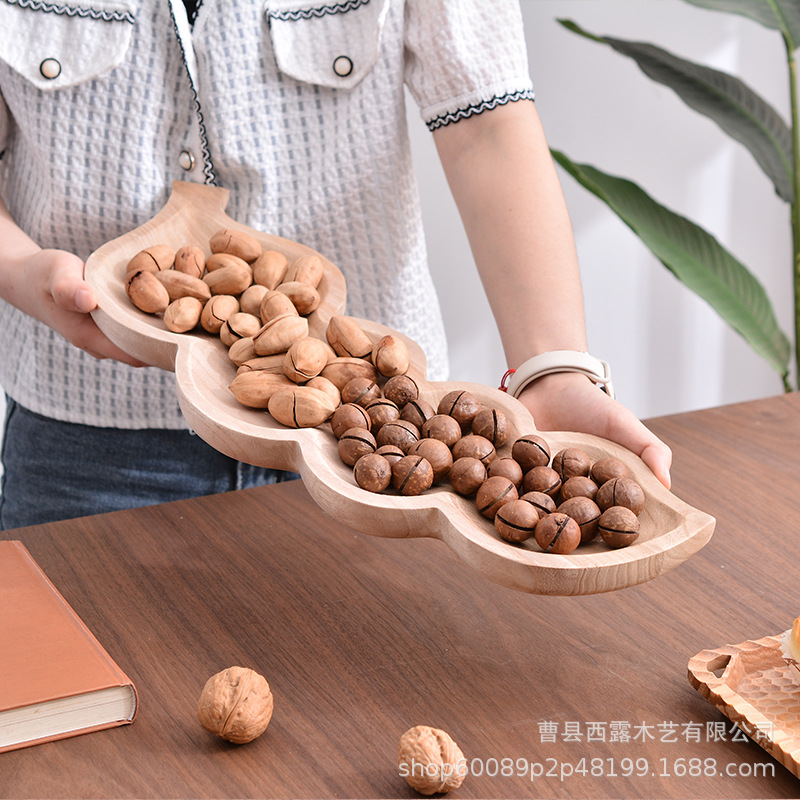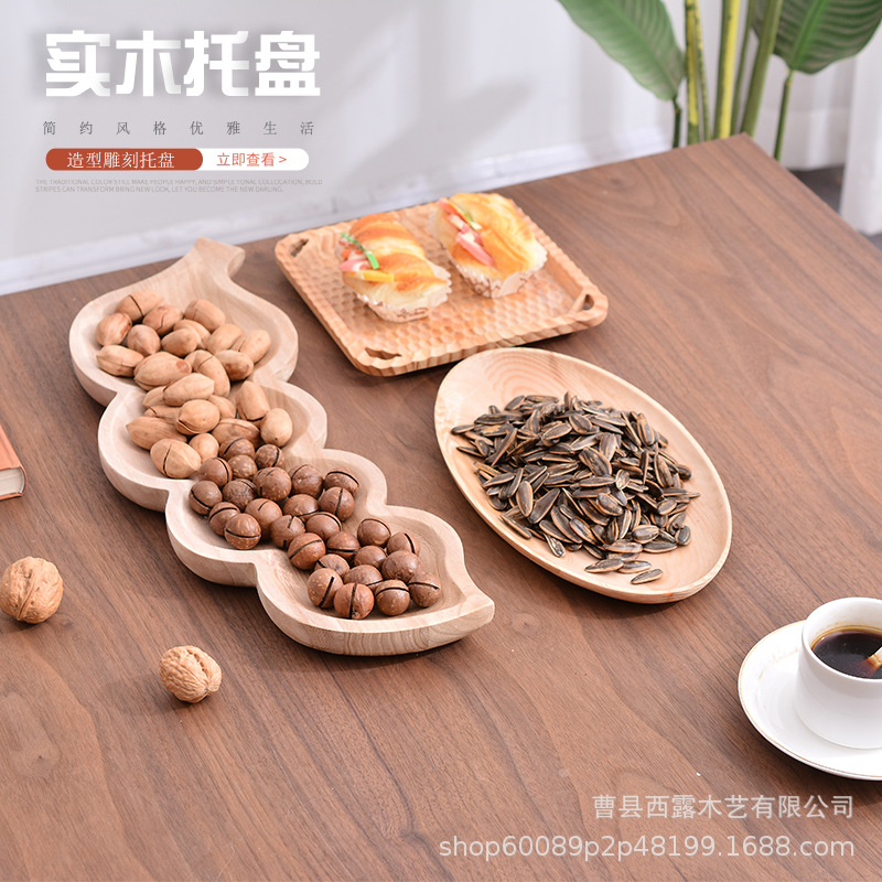 竹木托盘分隔客厅坚果零食收纳盘瓜子糖果盘餐厅下午茶盘