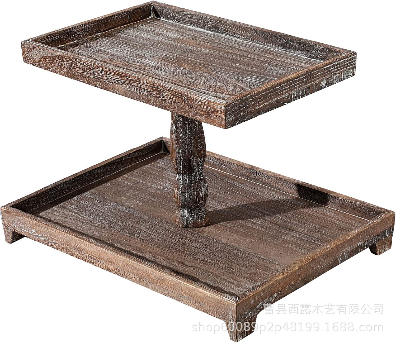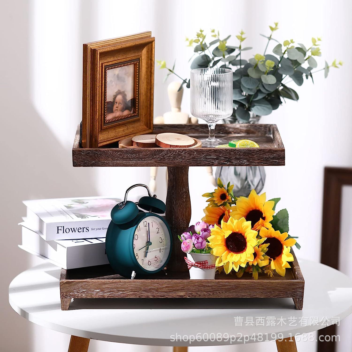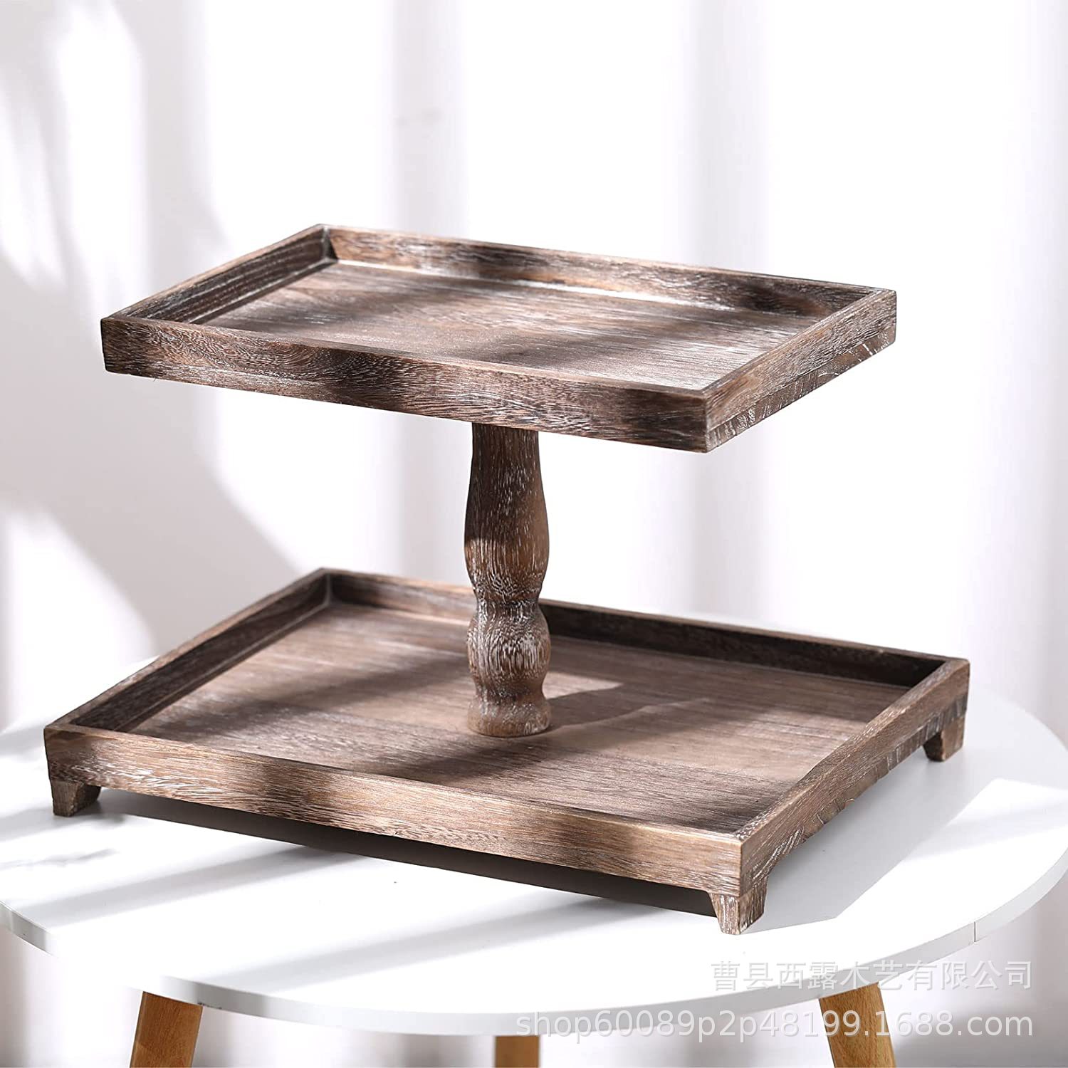 木质多层蛋糕盘甜点水果零食盘糖果展示盘婚礼家庭派对双层果盘