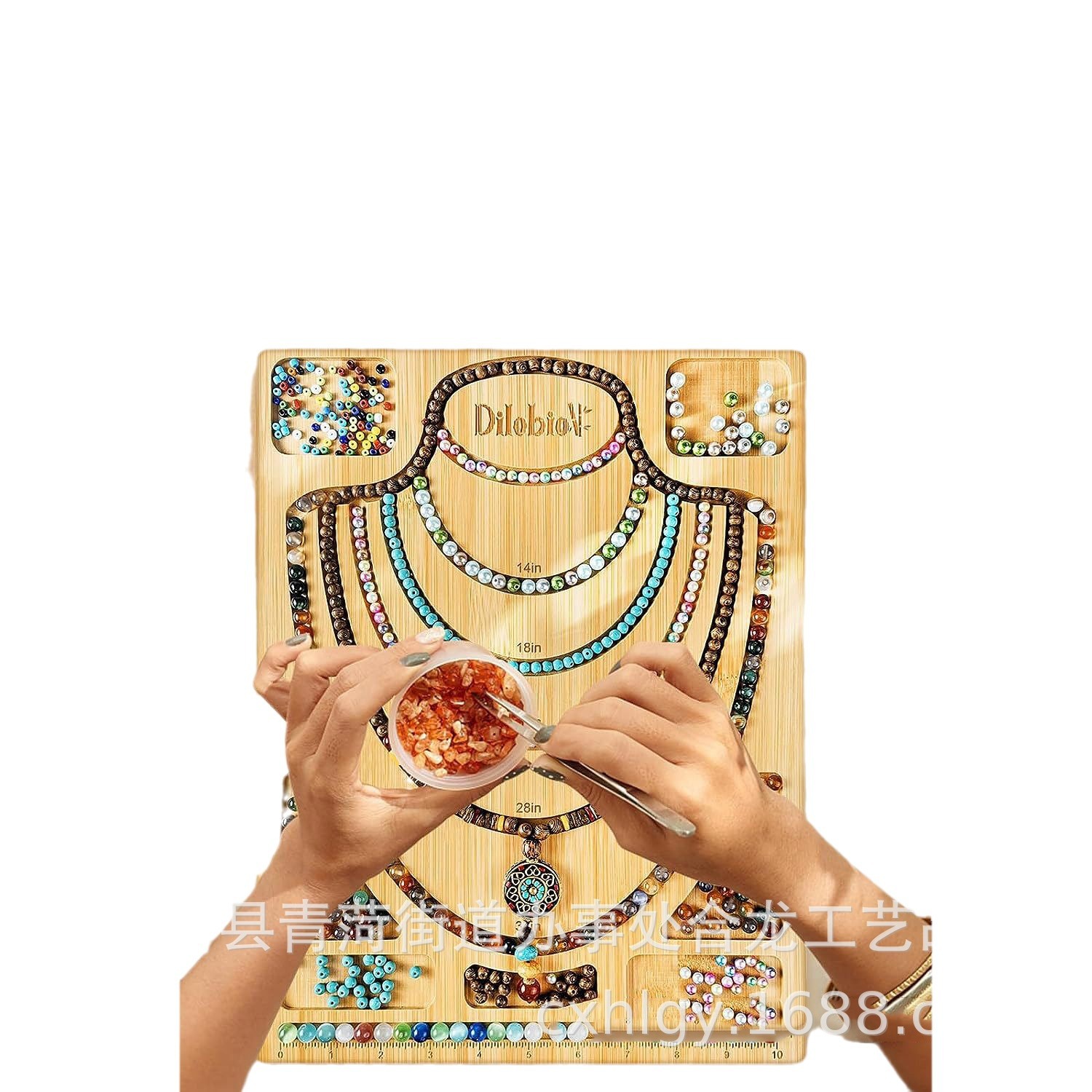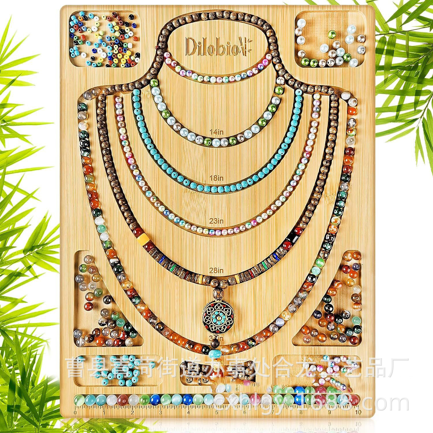 珠宝手串设计盘 文玩串珠工具DIY项链编织板复古刻度竹木展示托盘