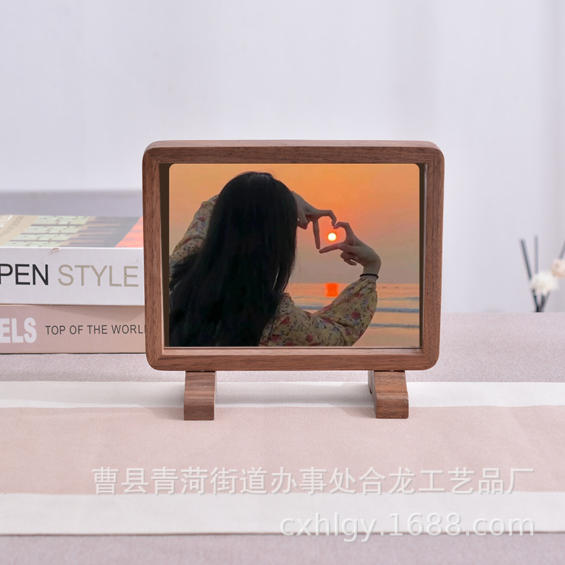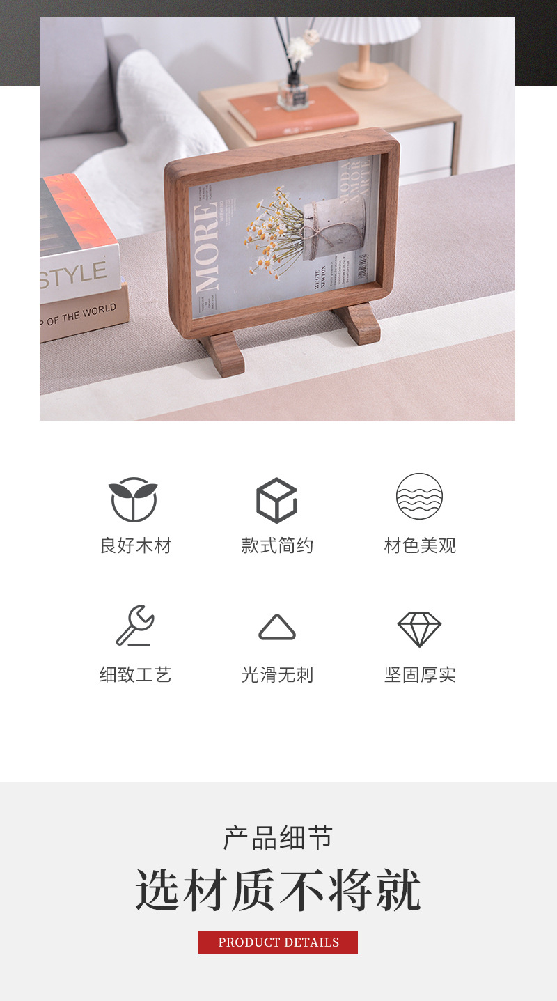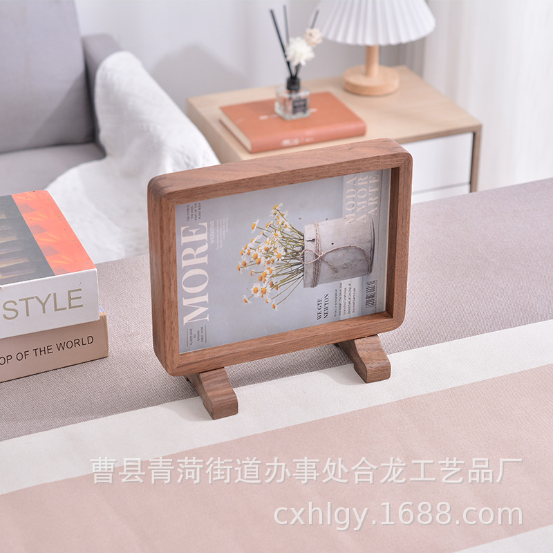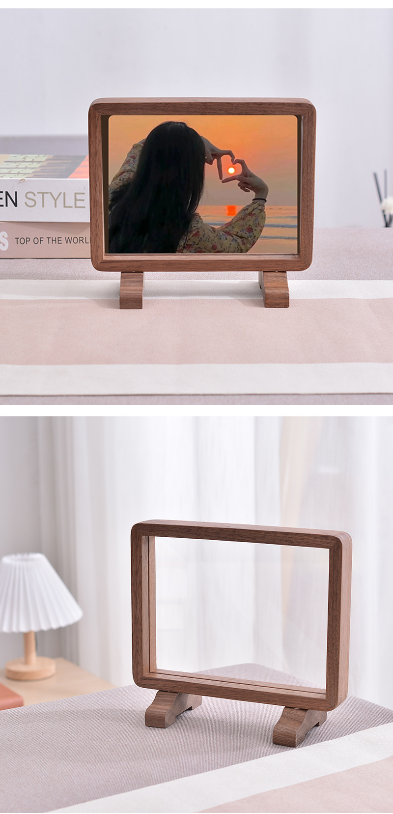 桌面相框摆台黑胡桃相框摆台实木双面透明画框装裱圆角相框桌面摆