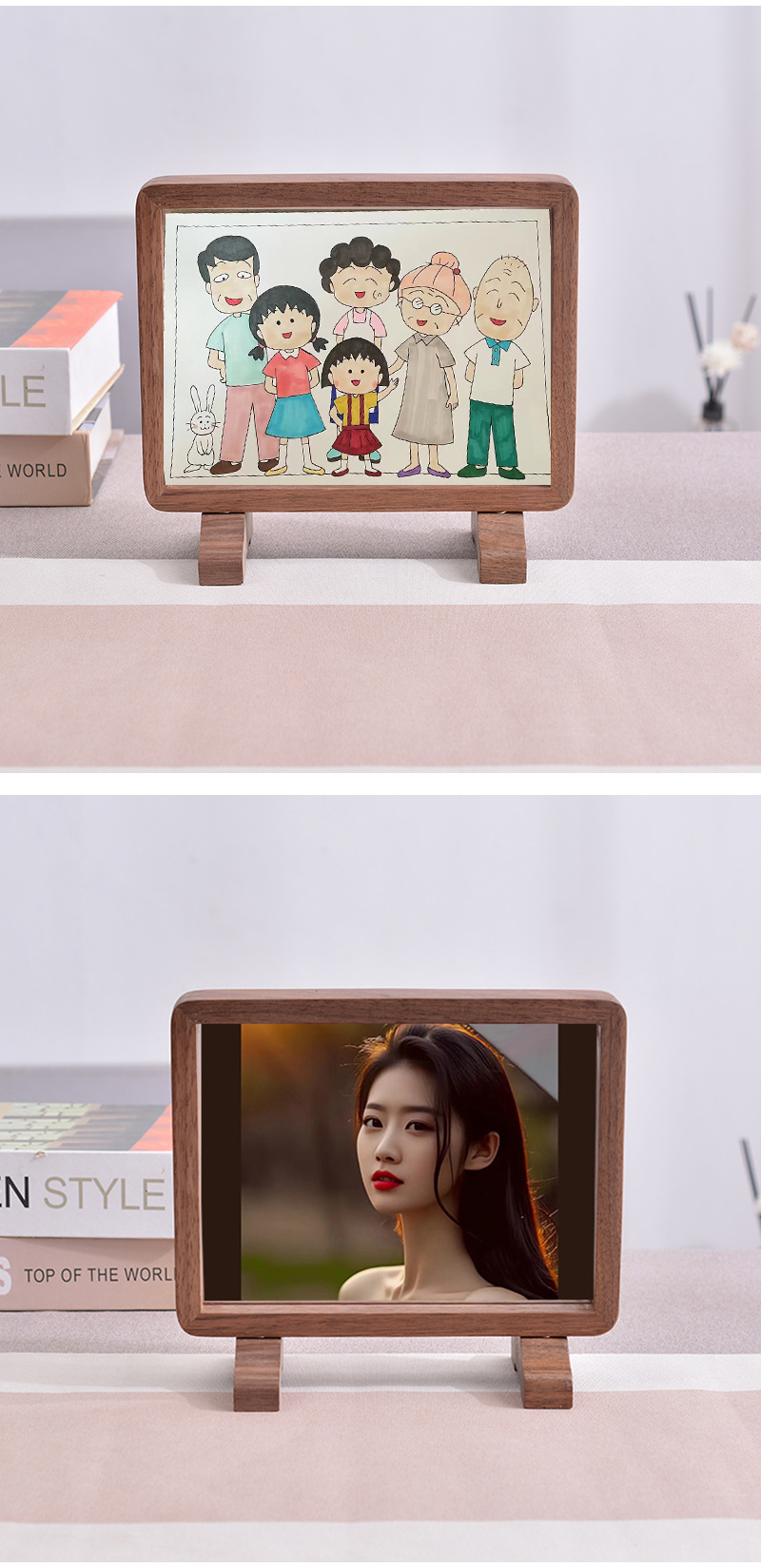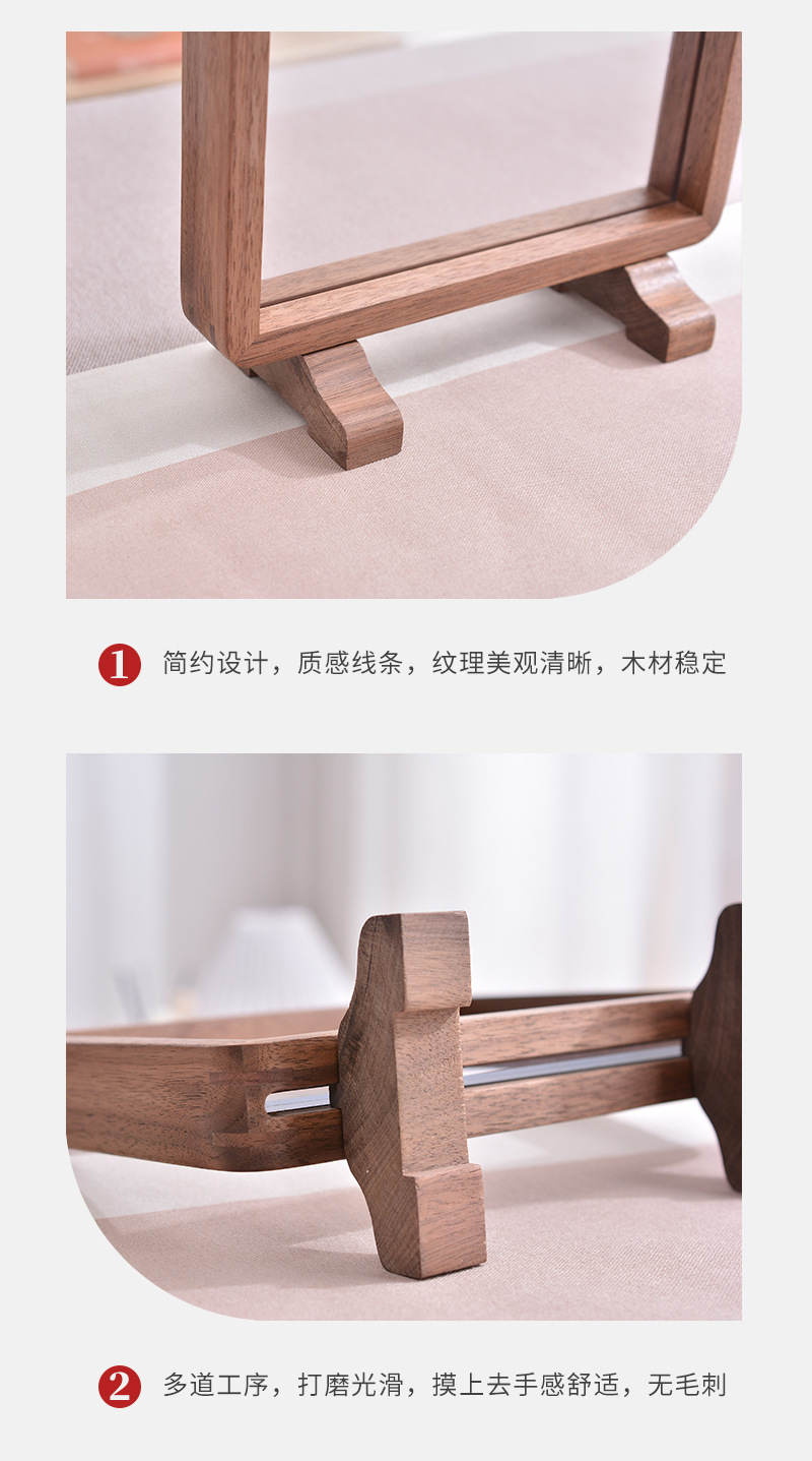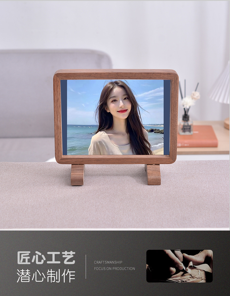 桌面相框摆台黑胡桃相框摆台实木双面透明画框装裱圆角相框桌面摆