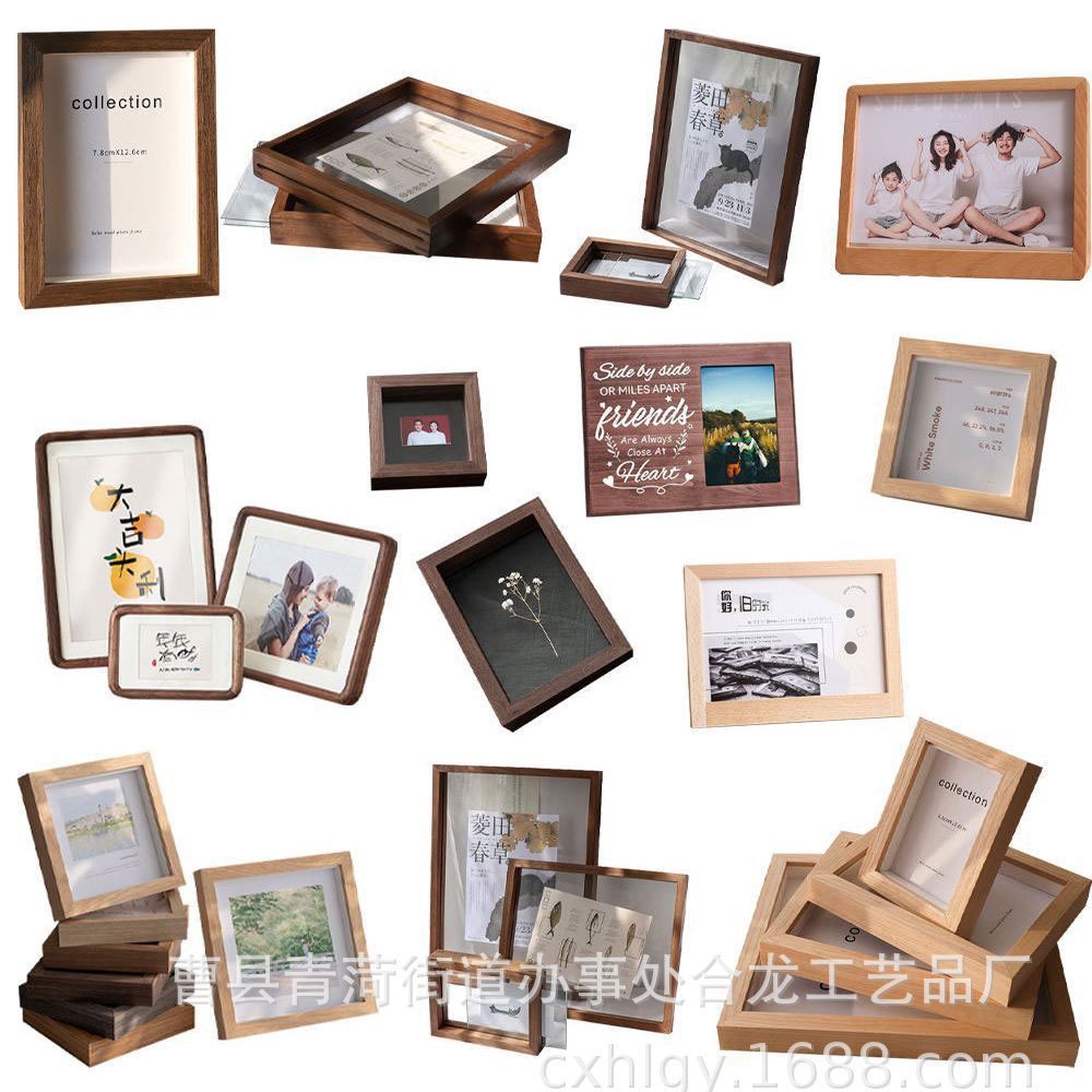 木质立体实木相框摆台批发 免打孔双面透明玻璃diy木质复古画框