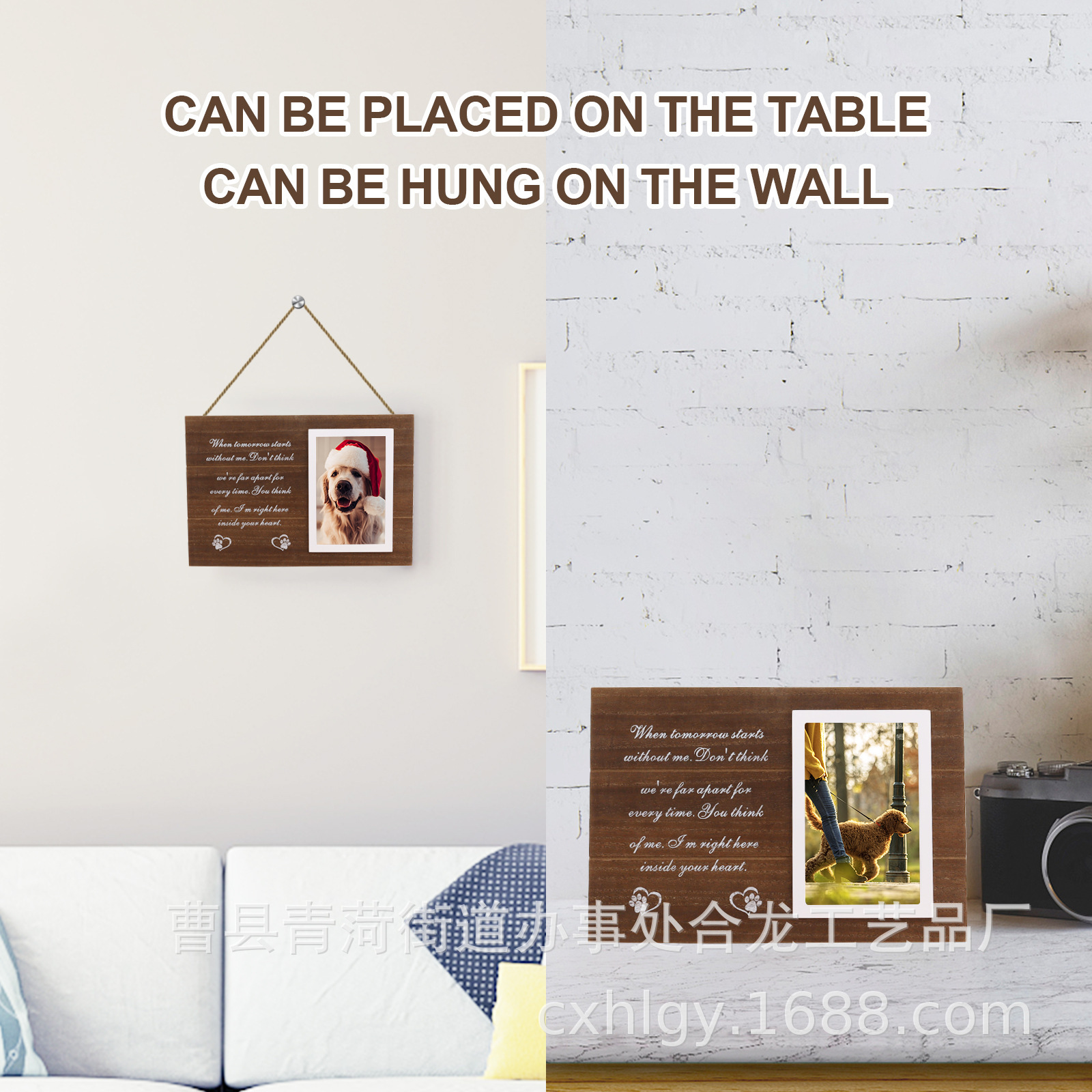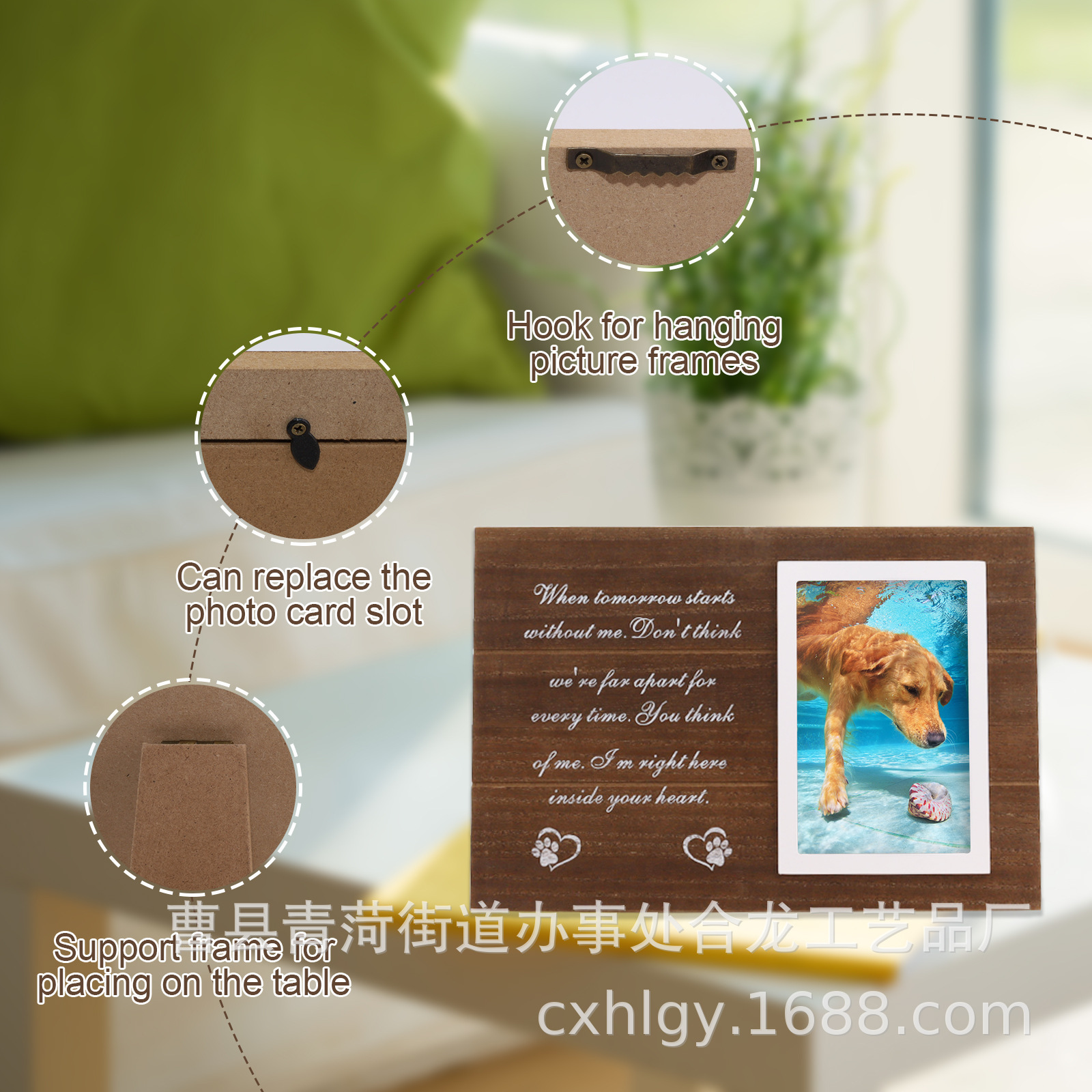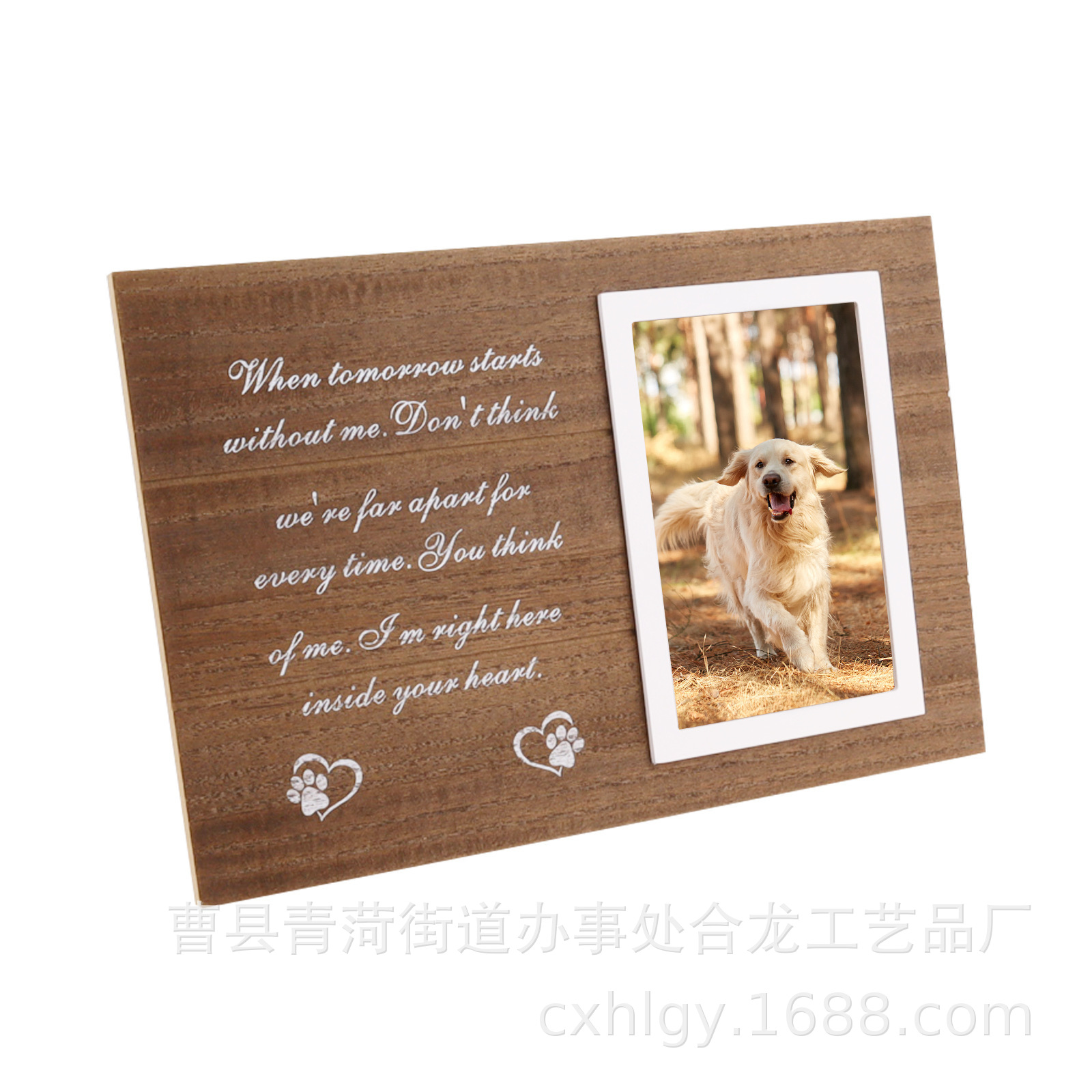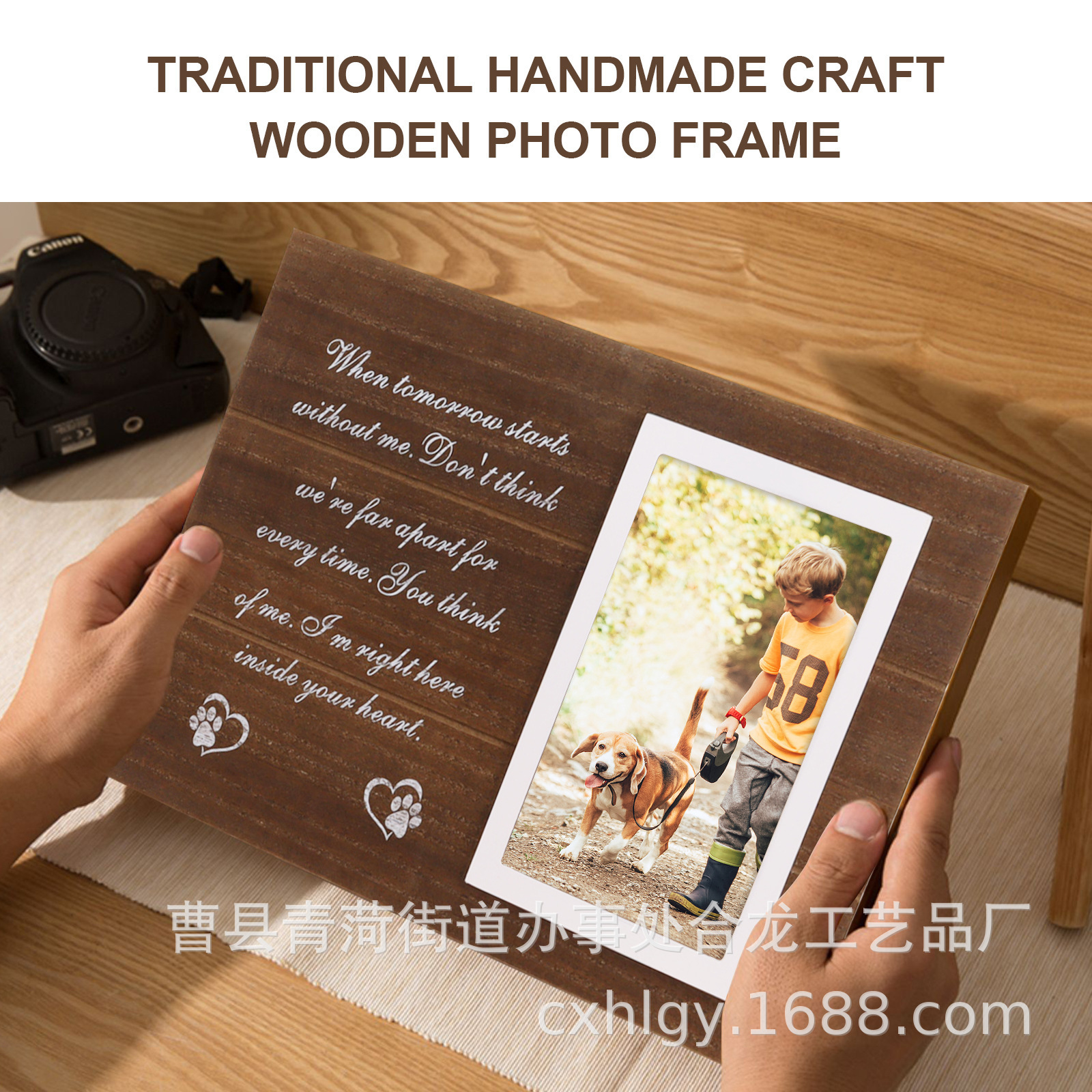 亚马逊木质宠物相框摆件木质猫狗纪念棕色木质照片相框挂饰跨境