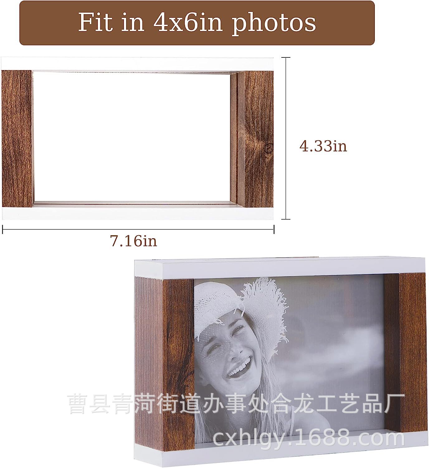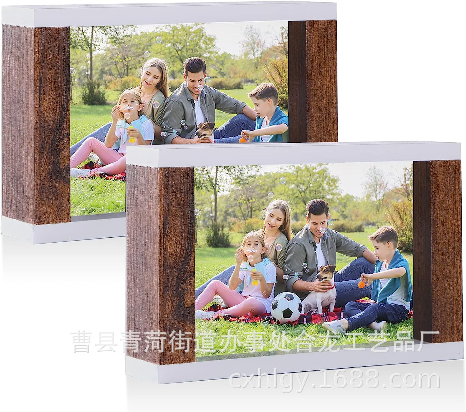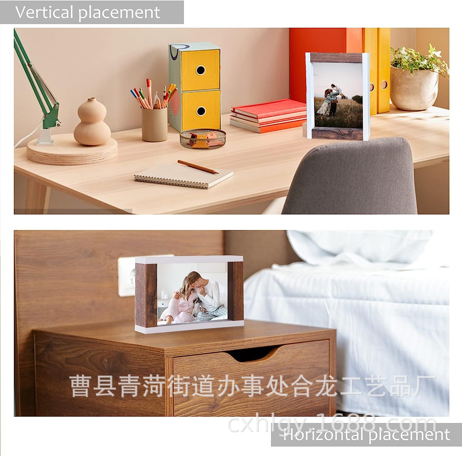 立体相框摆件木质装饰摆台纪念相框双色拼接相框时尚造型