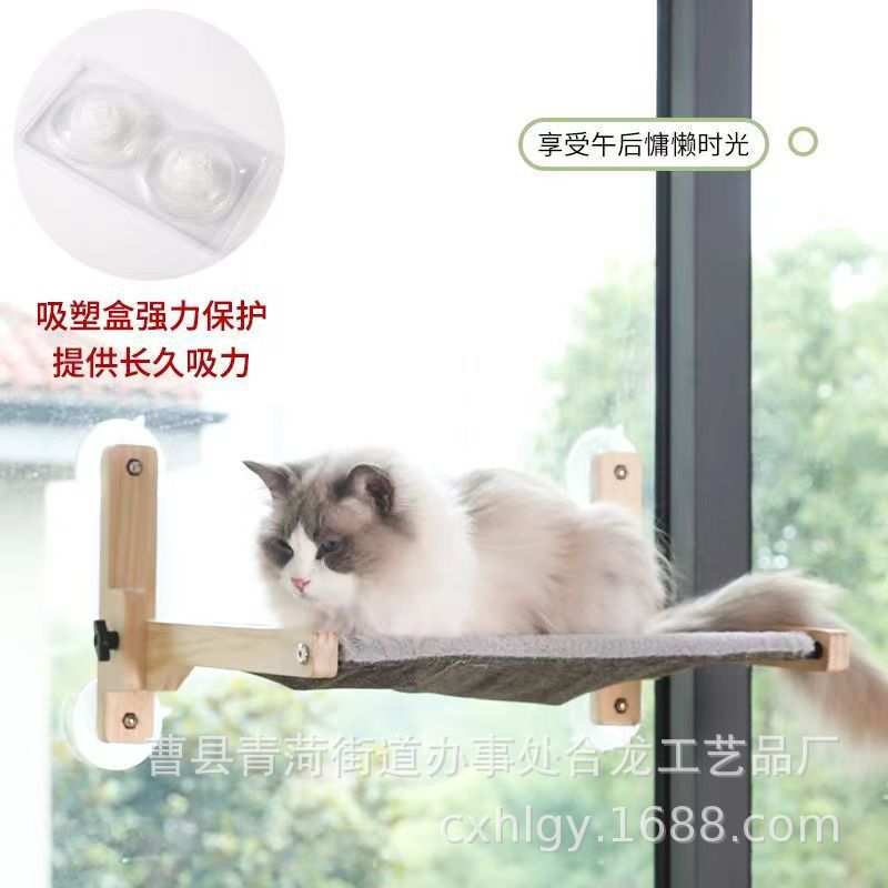 木质窗边悬挂猫挂床 家居阳台窗户猫咪吊床木制猫猫床边挂窝