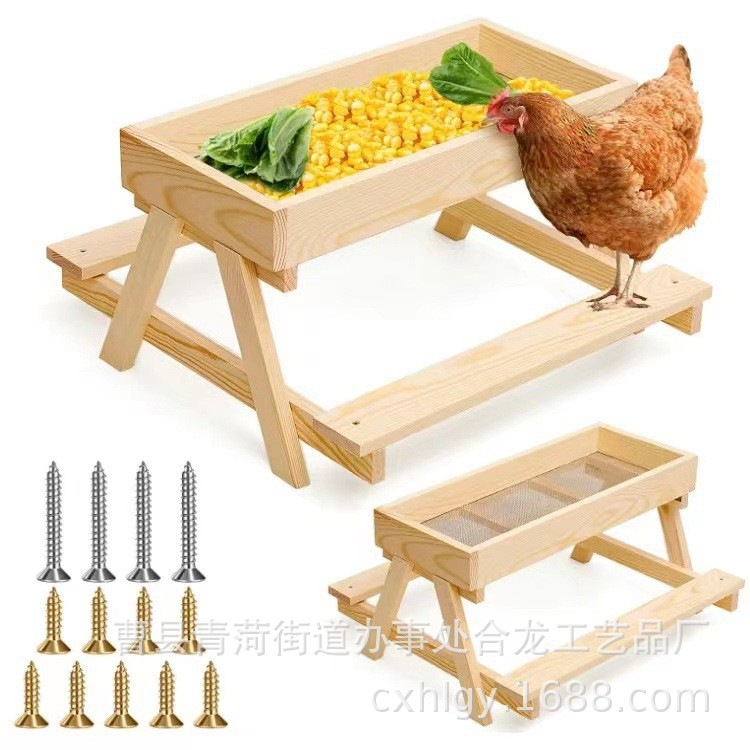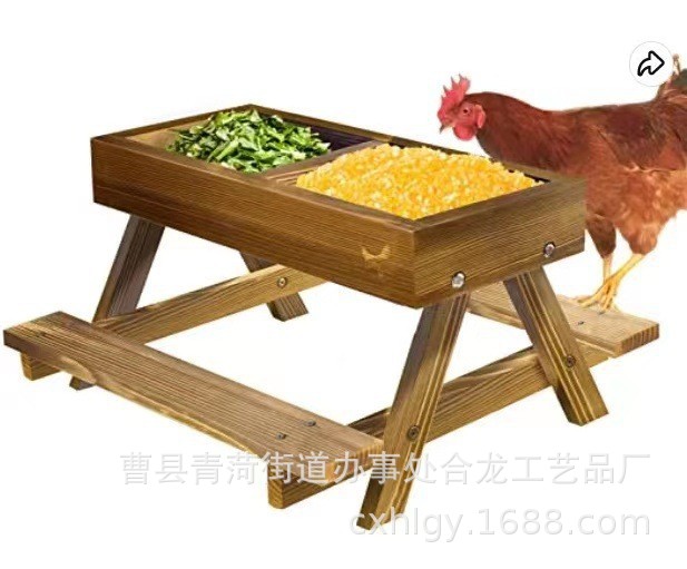 喂鸡器木质野餐桌小鸡喂食器大公鸡进食器木箱鸡喂食器可定规格