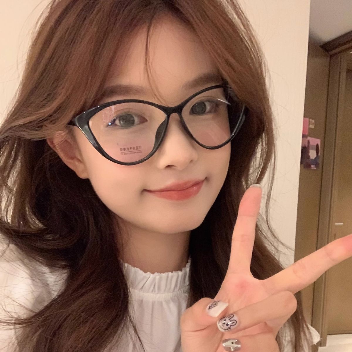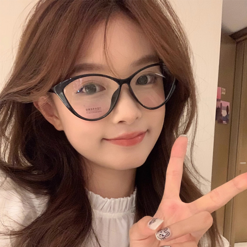 时尚女士猫眼眼镜框小红书同款眼镜架素颜平光镜个性防蓝光眼镜