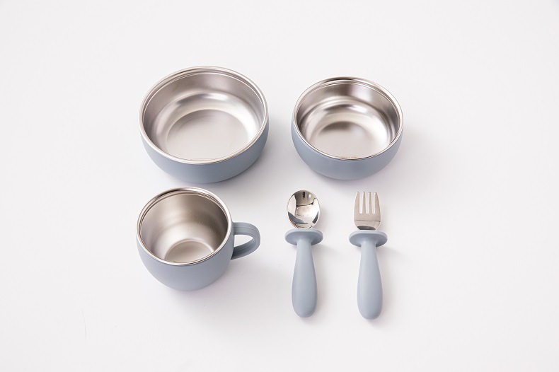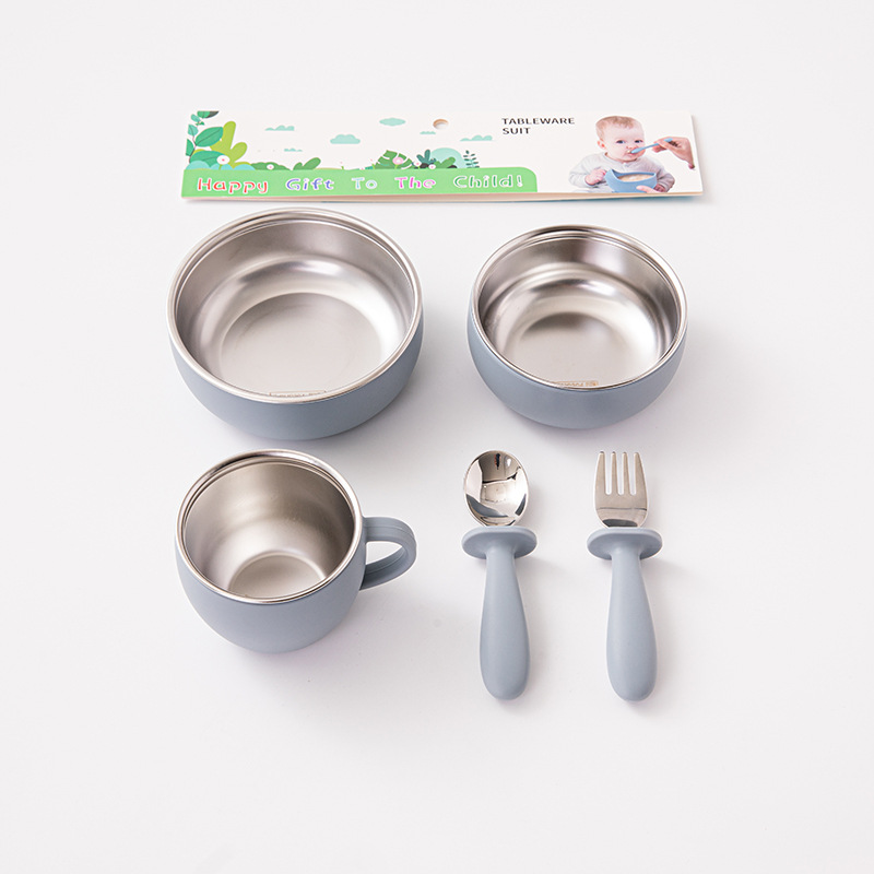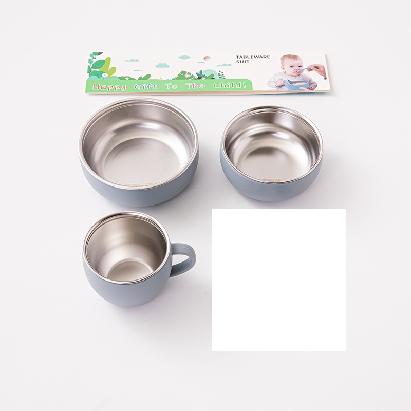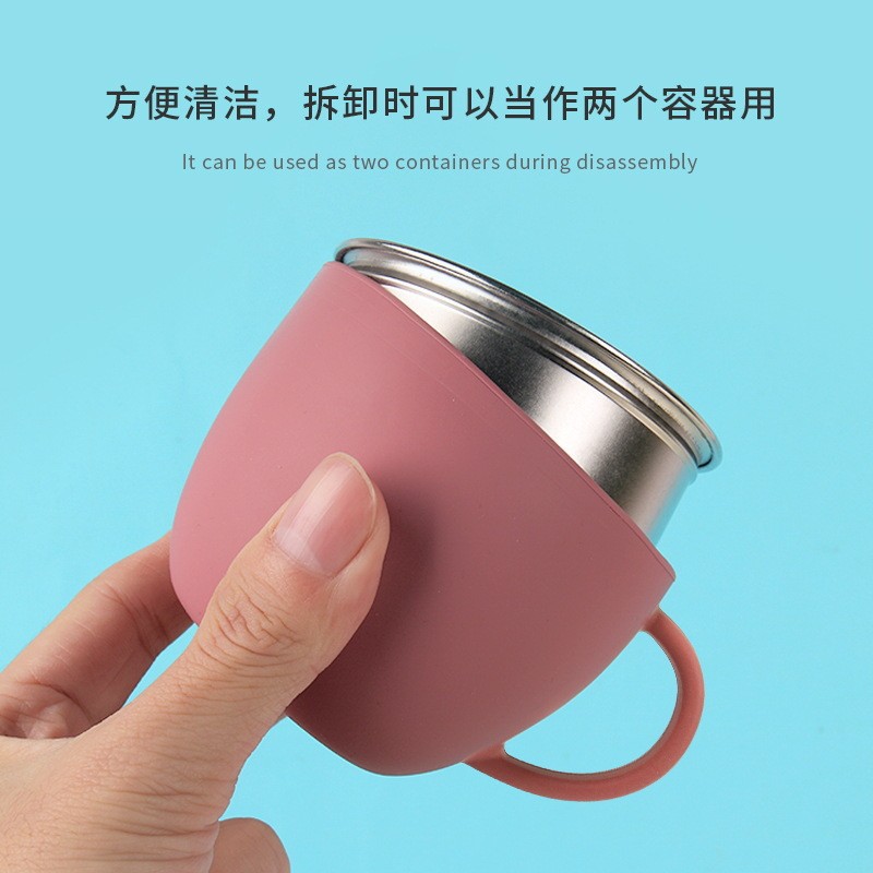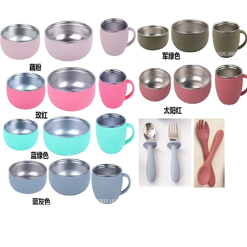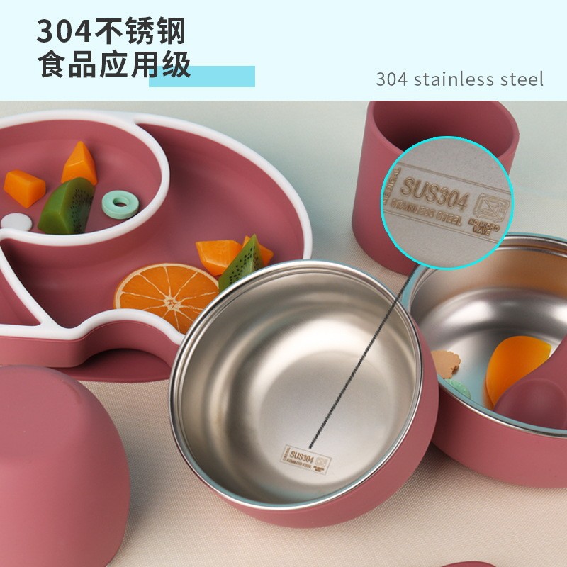 304不锈钢双层儿童辅食碗厂家直销婴儿硅胶套装杯子碗餐盘