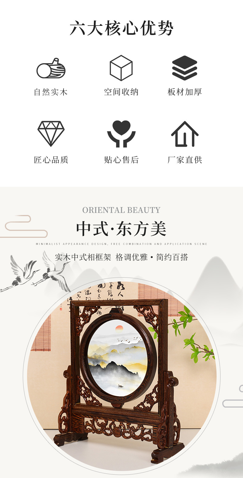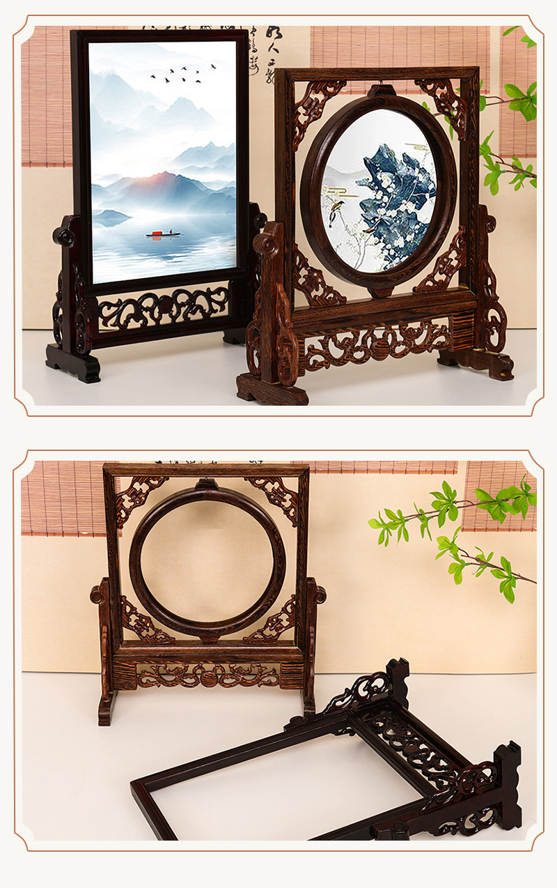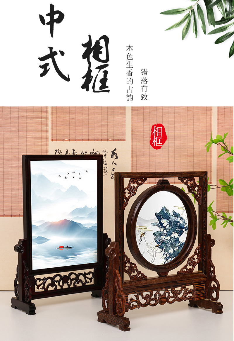实木相框旋转相框中国风摆台小屏风工艺品摆件桌面中式实木相框摆