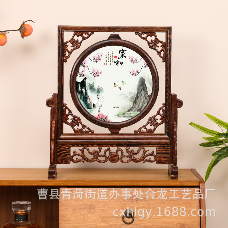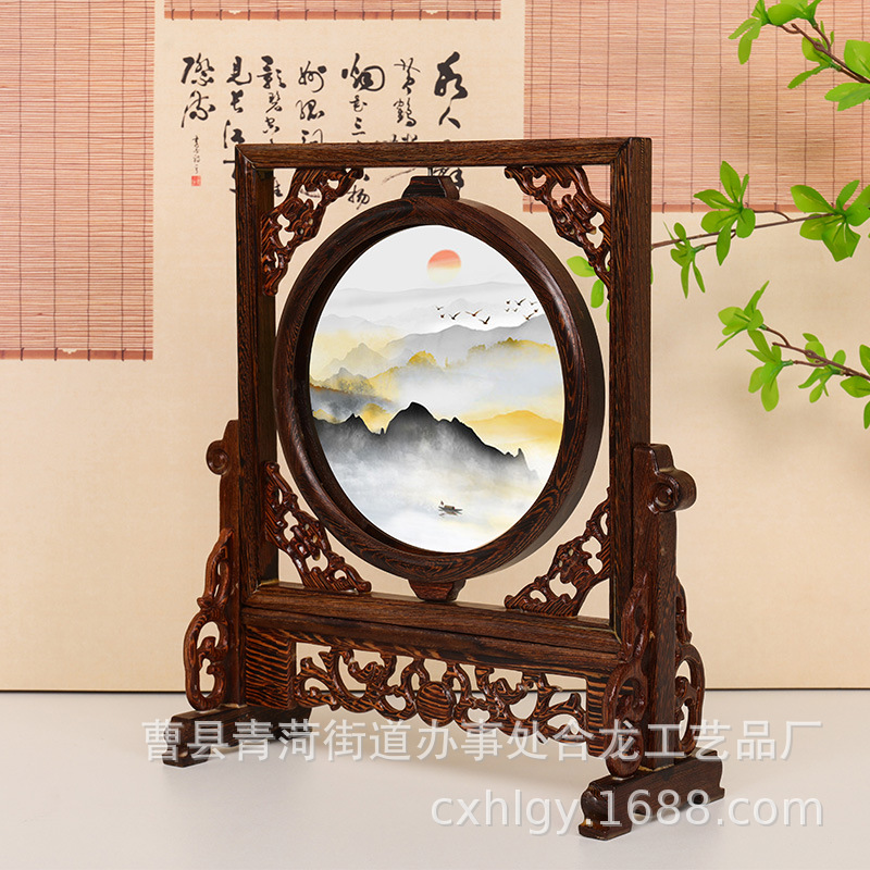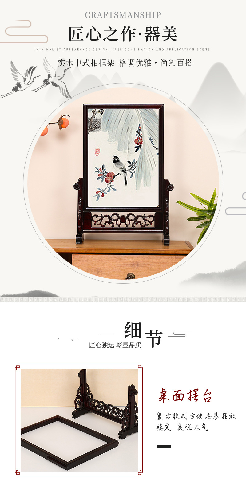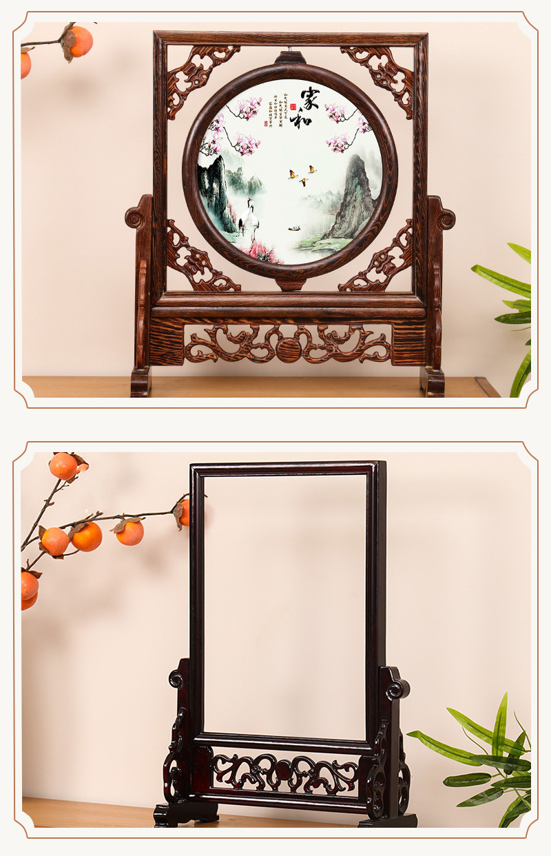 实木相框旋转相框中国风摆台小屏风工艺品摆件桌面中式实木相框摆
