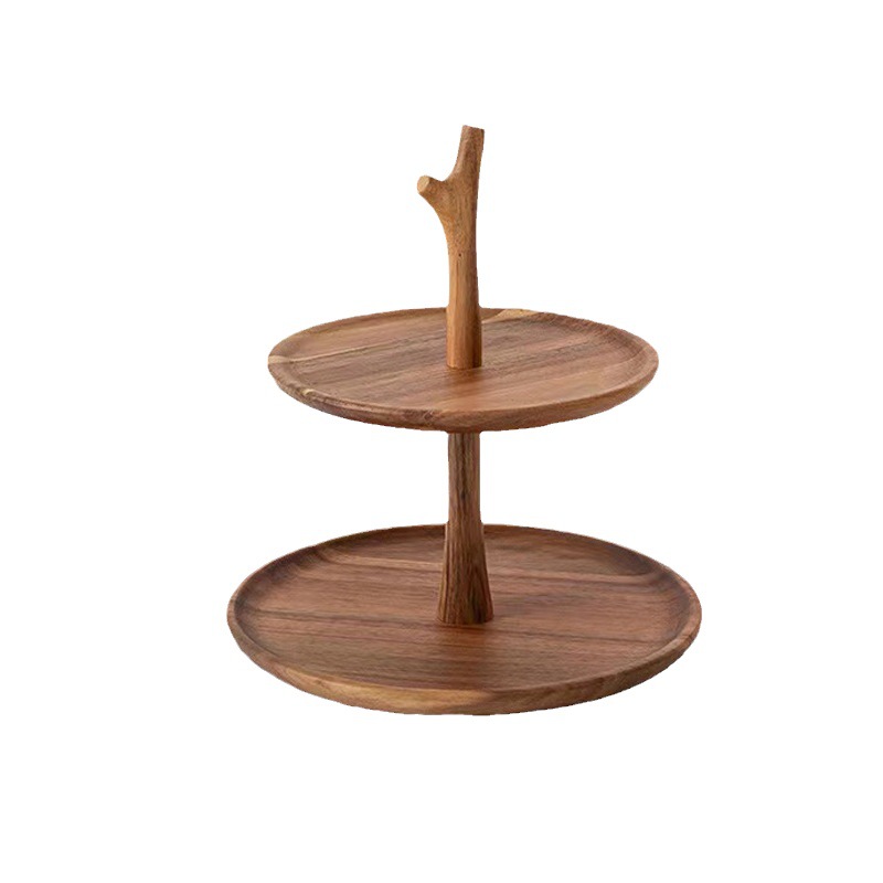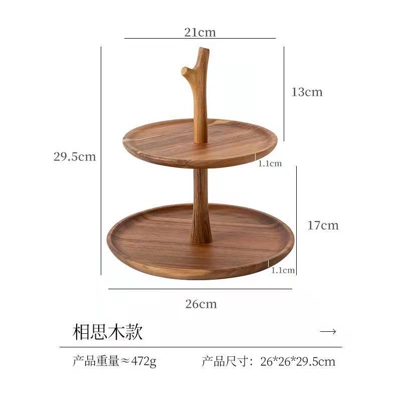 木质托盘树杈款双层水果点心托盘零食托盘道具装饰木质托盘桌面盘