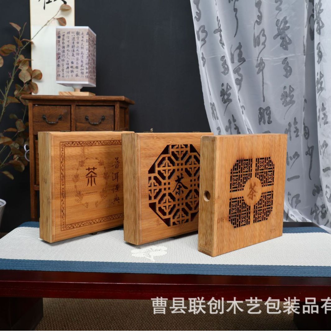 中式木质茶叶盒包装盒普洱茶饼礼品盒空盒实木家用散茶收纳木盒
