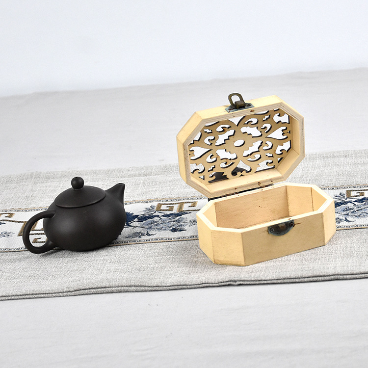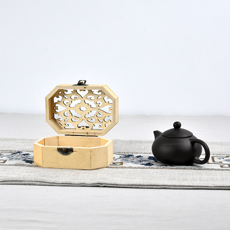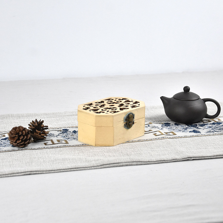 国风镂空雕花小茶叶盒 木质翻盖普洱茶饼茶叶盒子 木制茶叶收纳盒
